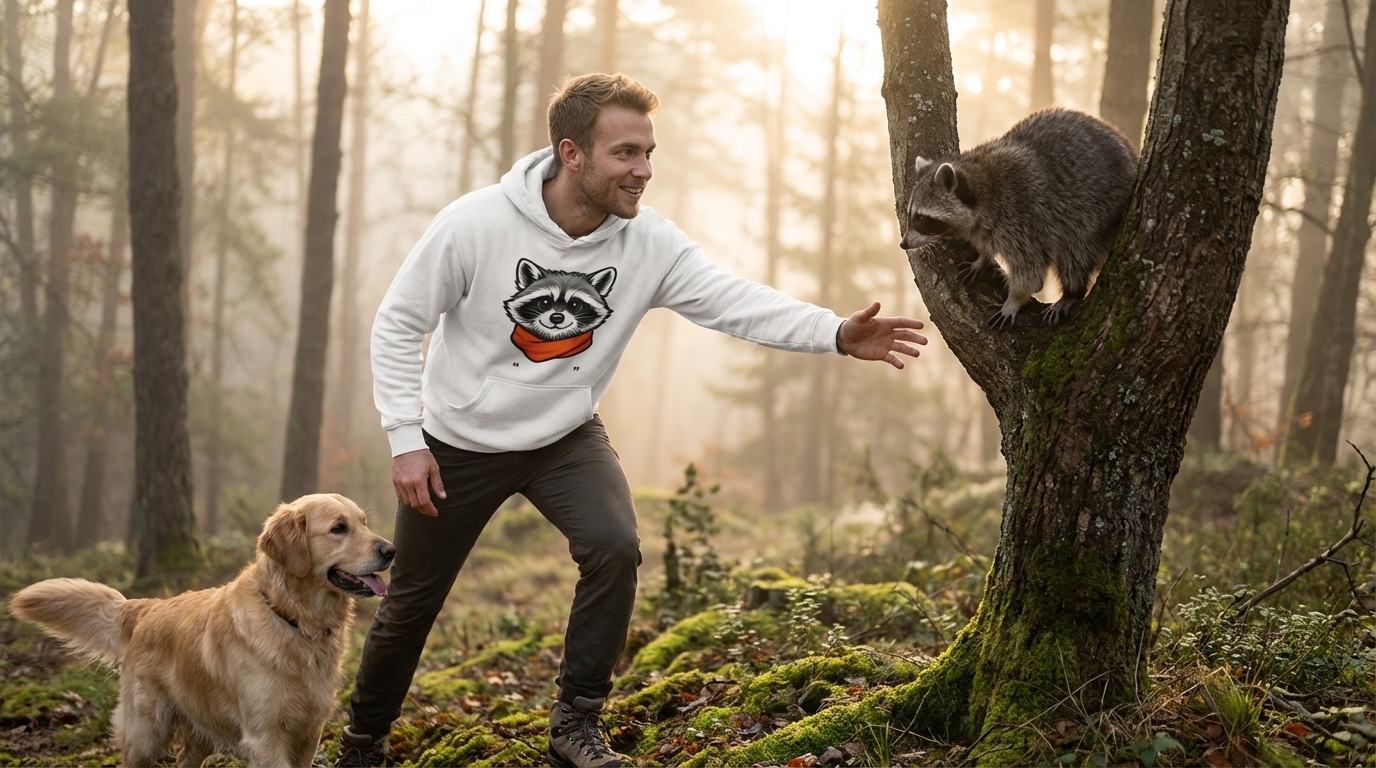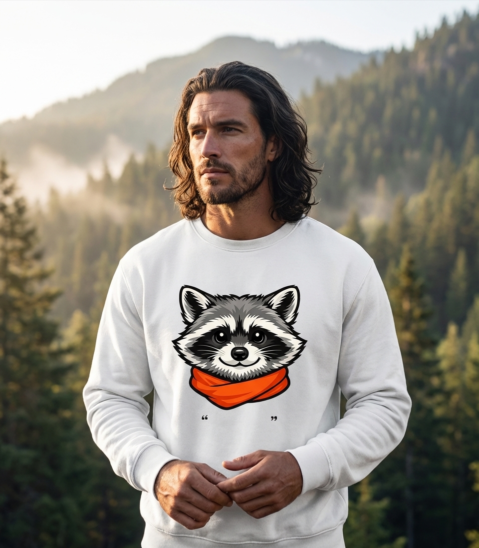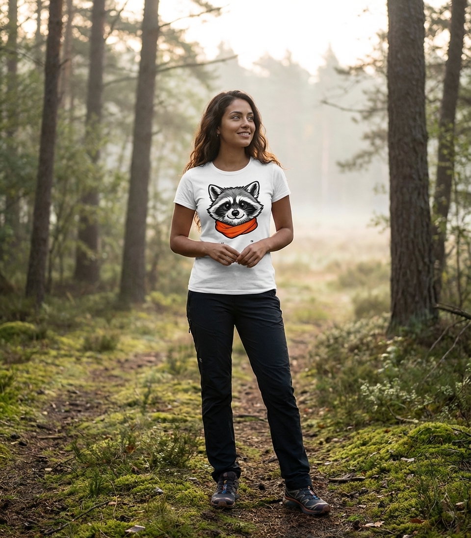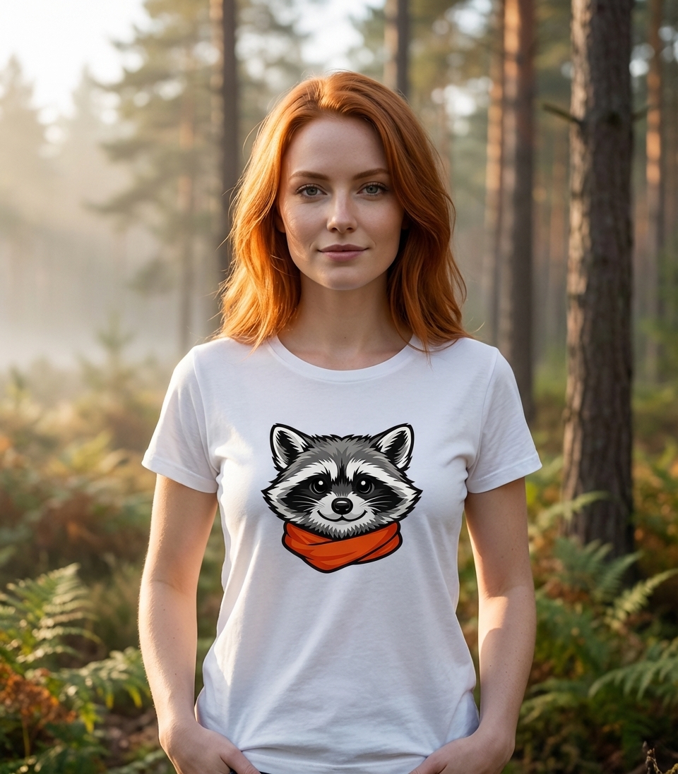 The charming raccoon graphic captures the spirit of wildlife lovers who appreciate cute animal designs and unique style.