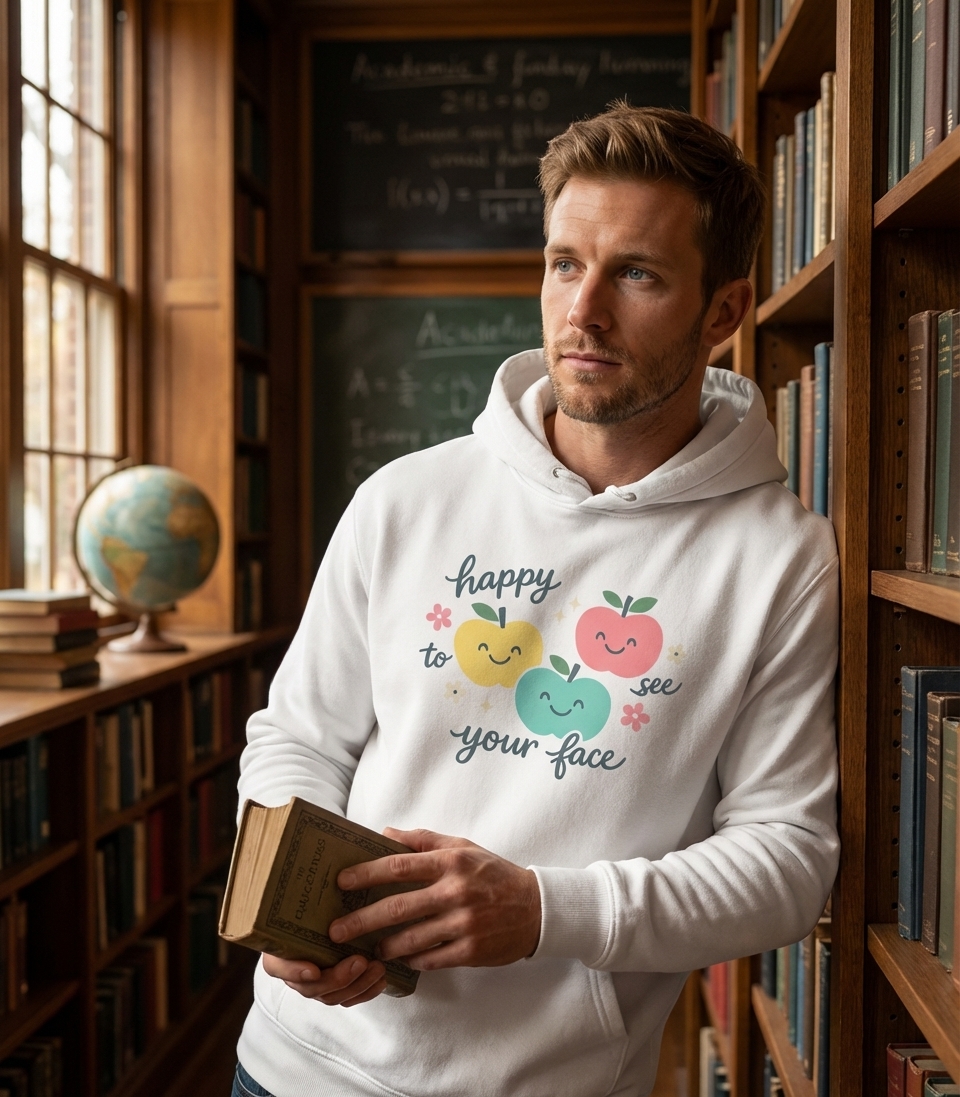 The 'Happy To See Your Face' phrase captures the lifestyle of caring educators who love welcoming students and spreading daily cheer.