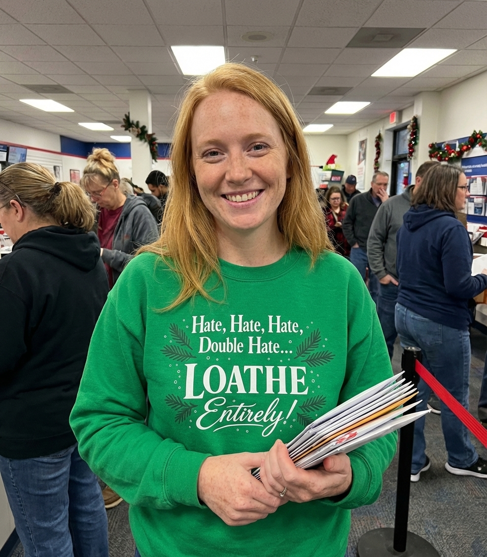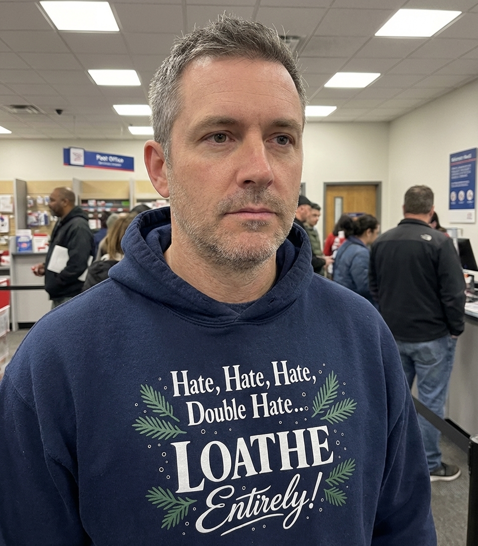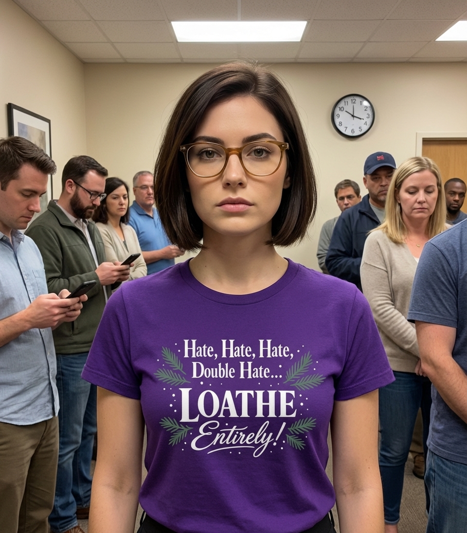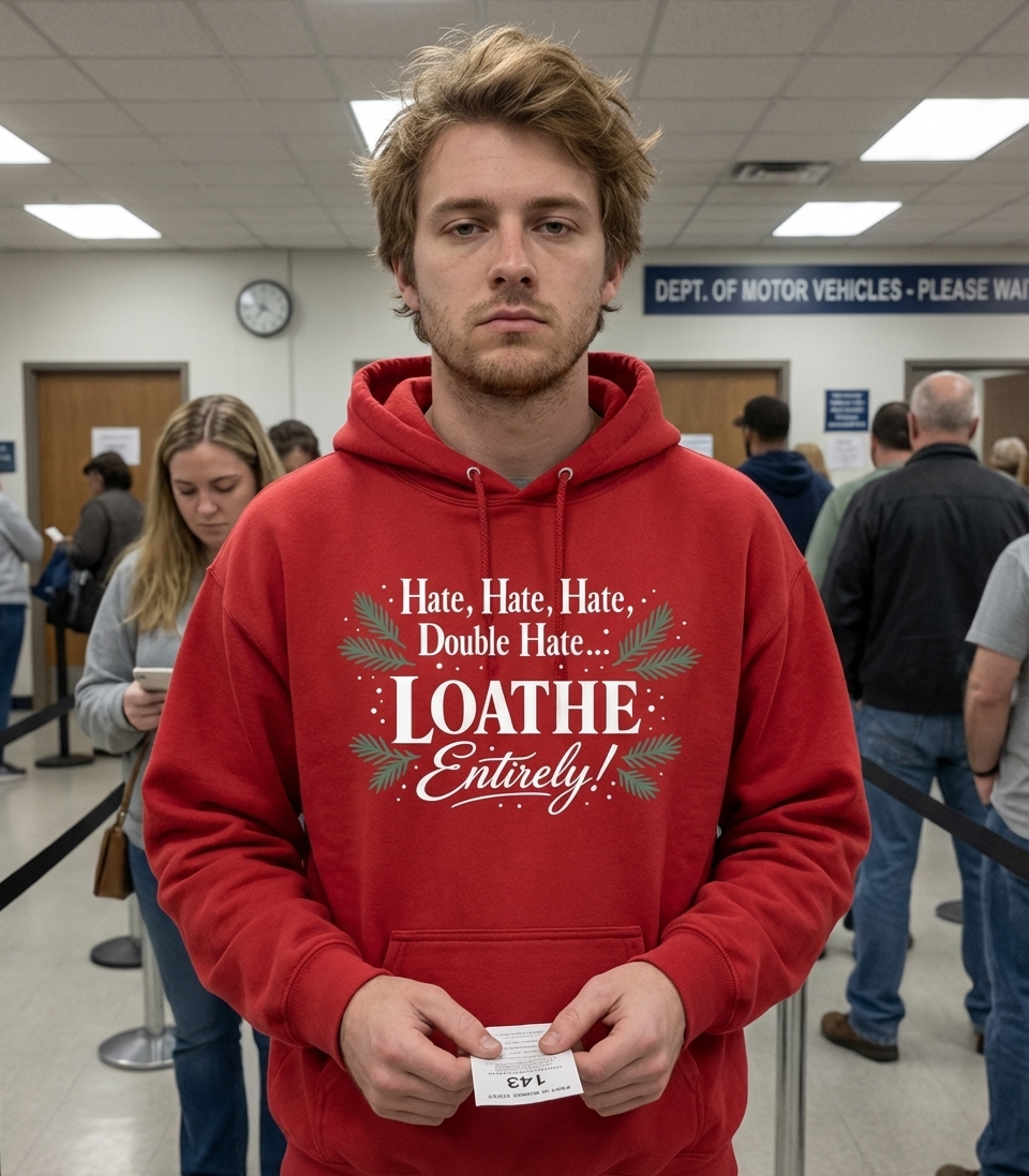 The 'Hate, Hate, Hate, Double Hate... LOATHE Entirely!' phrase captures the lifestyle of festive grumps who spend their days avoiding cheer, spreading cynicism, and embracing holiday sarcasm.