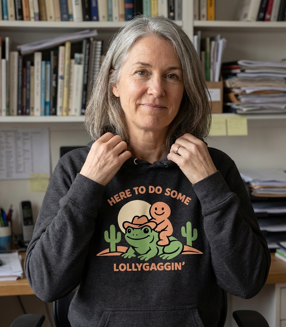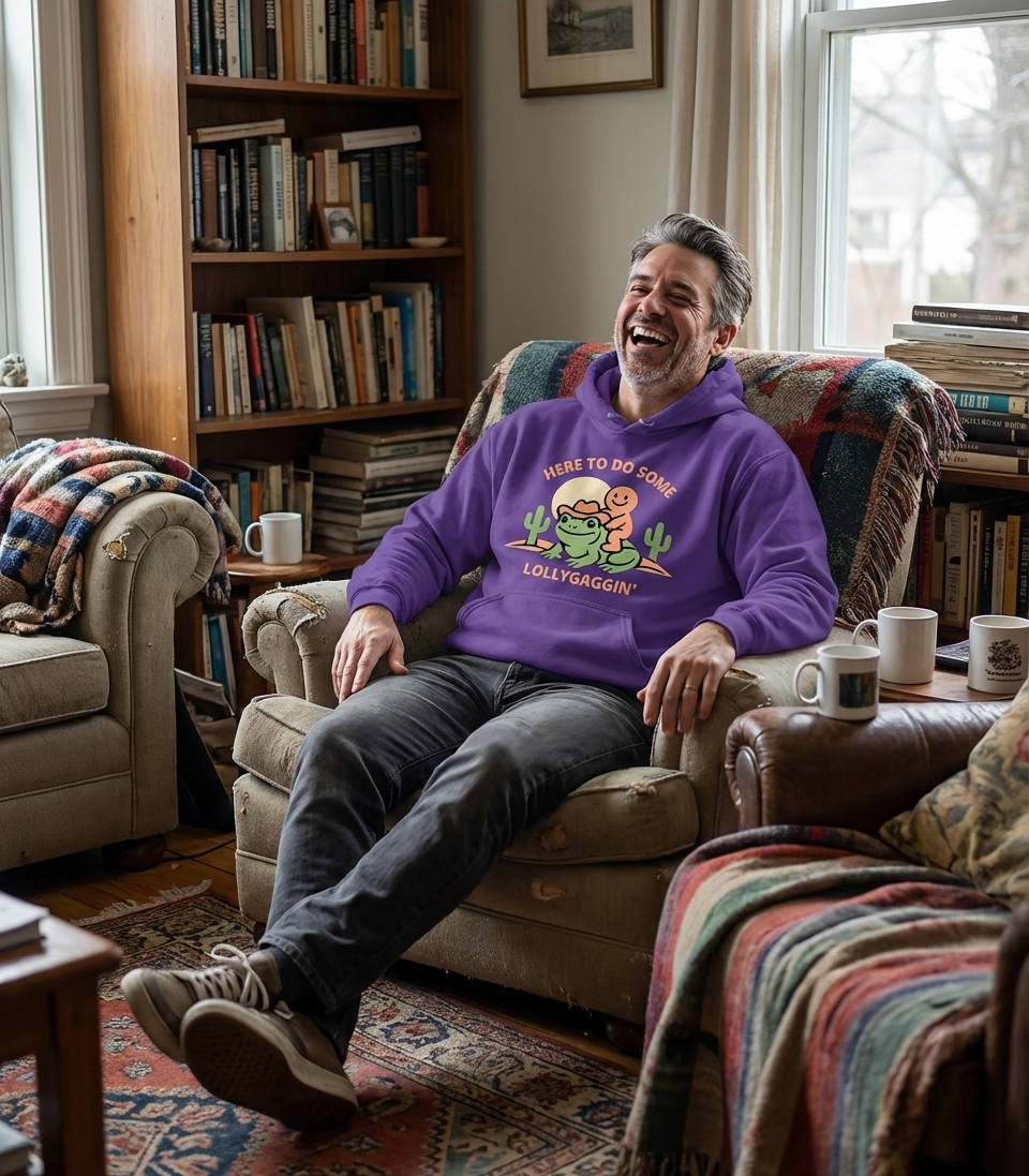 The 'Here To Do Some Lollygaggin'' phrase captures the relaxed spirit of individuals who enjoy taking it easy, embracing whimsy, and savoring slow-paced moments.