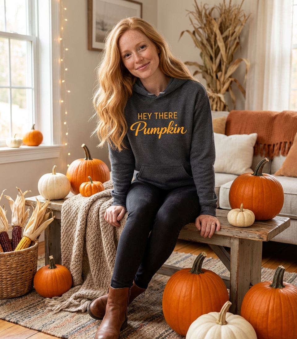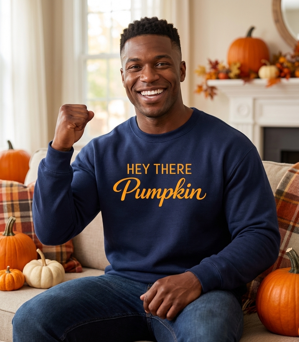 The "Hey There Pumpkin" phrase captures the warm, welcoming spirit of autumn enthusiasts who love cozy greetings, seasonal charm, and spreading good cheer.