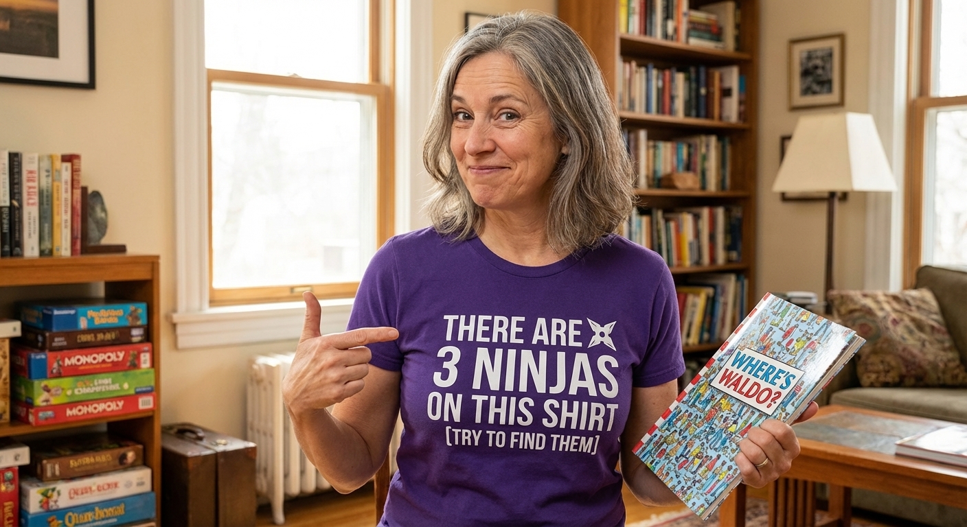 The "3 Ninjas" phrase captures the lifestyle of clever puzzle solvers who enjoy martial arts themes and witty visual gags.