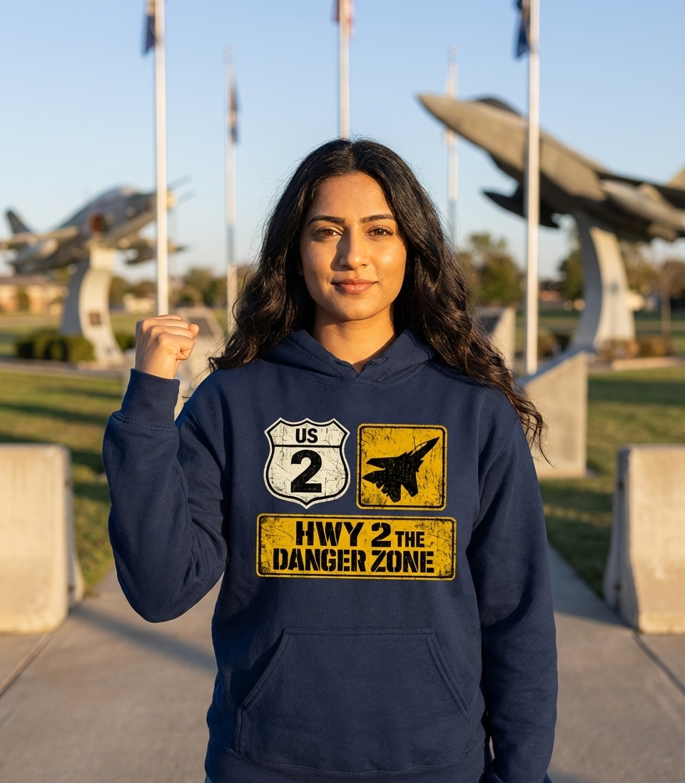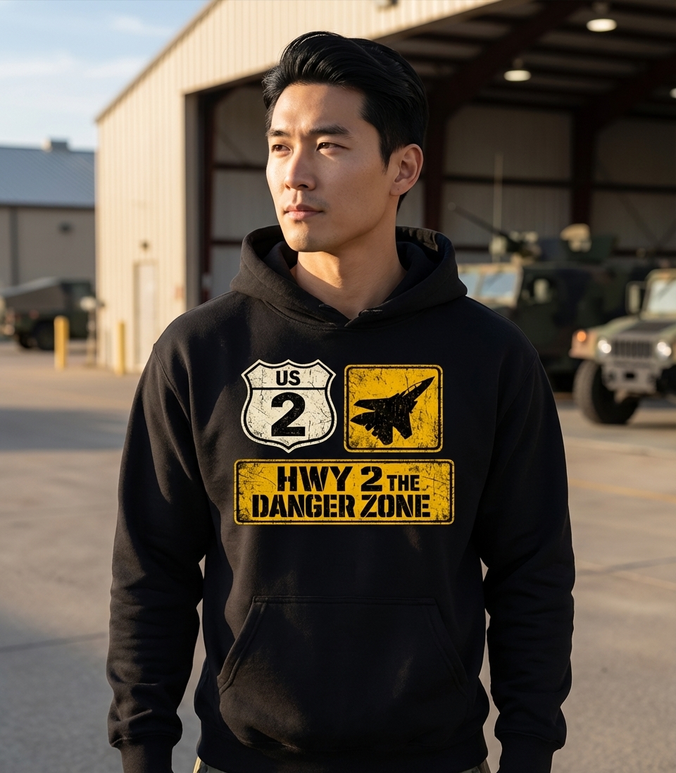 The 'HWY 2 THE DANGER ZONE' design captures the thrill of high-flying aviation, speed, and adventurous spirits.
