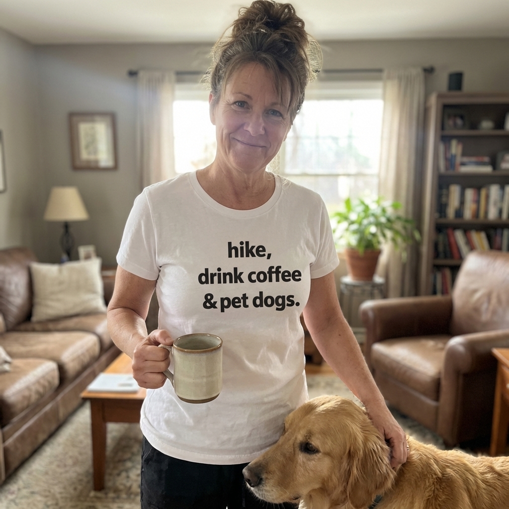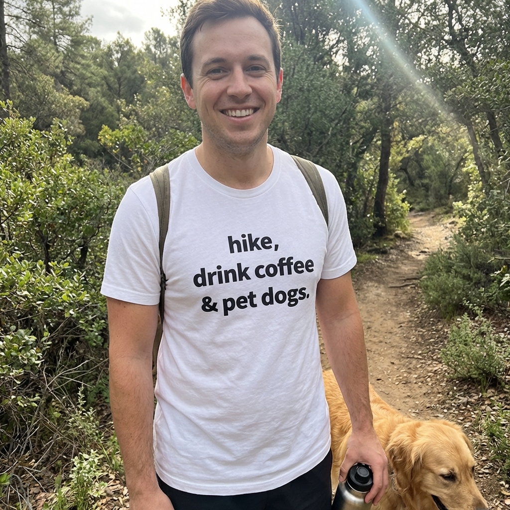 This "Hike Coffee Dogs Lifestyle" tee is great, really dig the design. It's super comfy too, perfect for just chilling or taking my dog out for a walk. Definitely a new favorite.