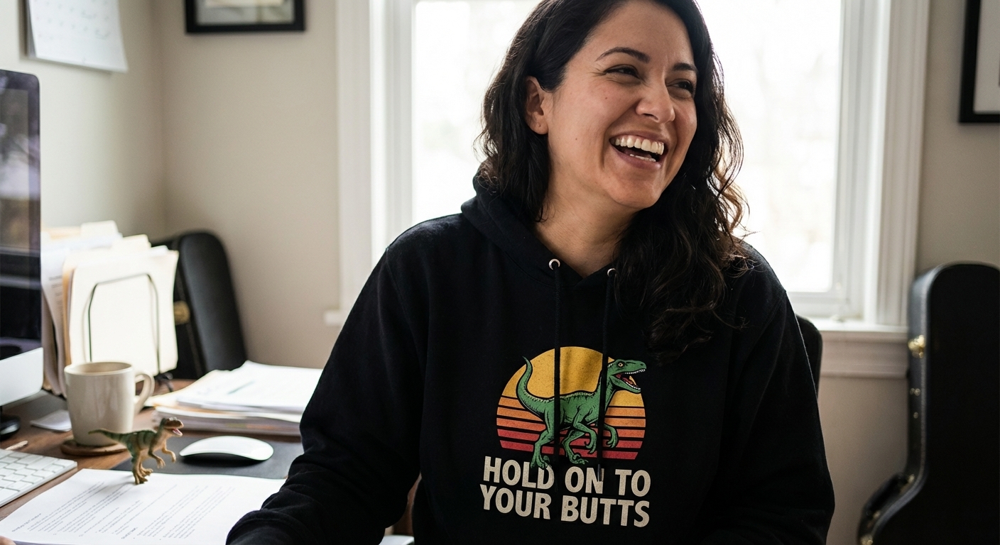 The 'Hold On To Your Butts' phrase captures the lifestyle of film fanatics who love classic cinema, thrilling scenes, and iconic movie dialogue.