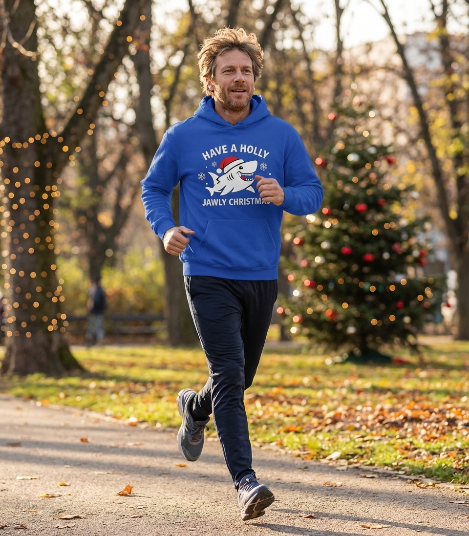 Yes! Check the style selector above to see all available options including hoodies and sweatshirts for the Holly Jawly Christmas Shark graphic.