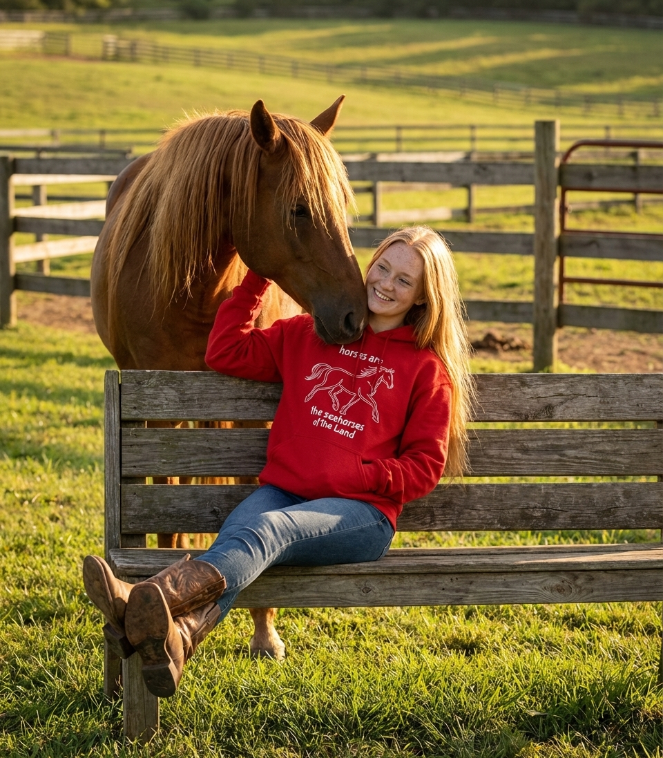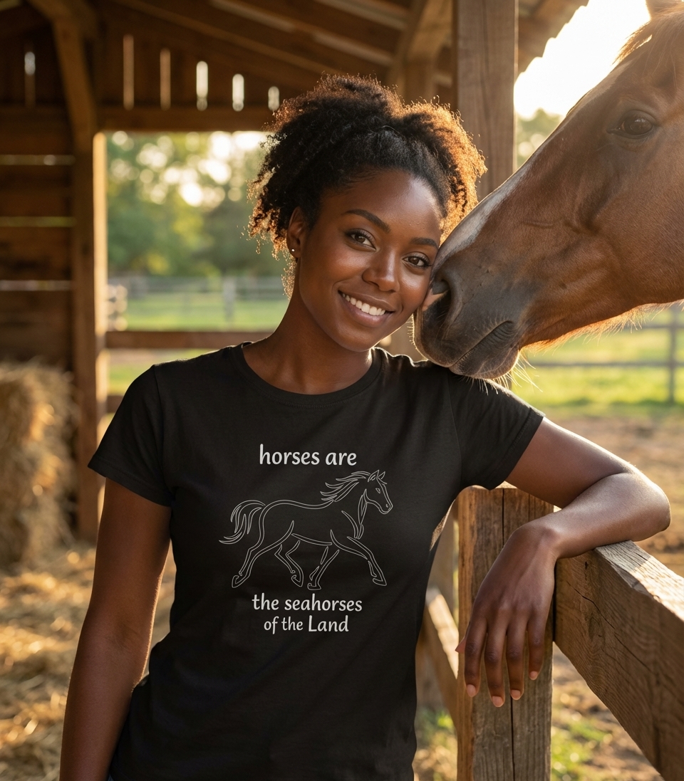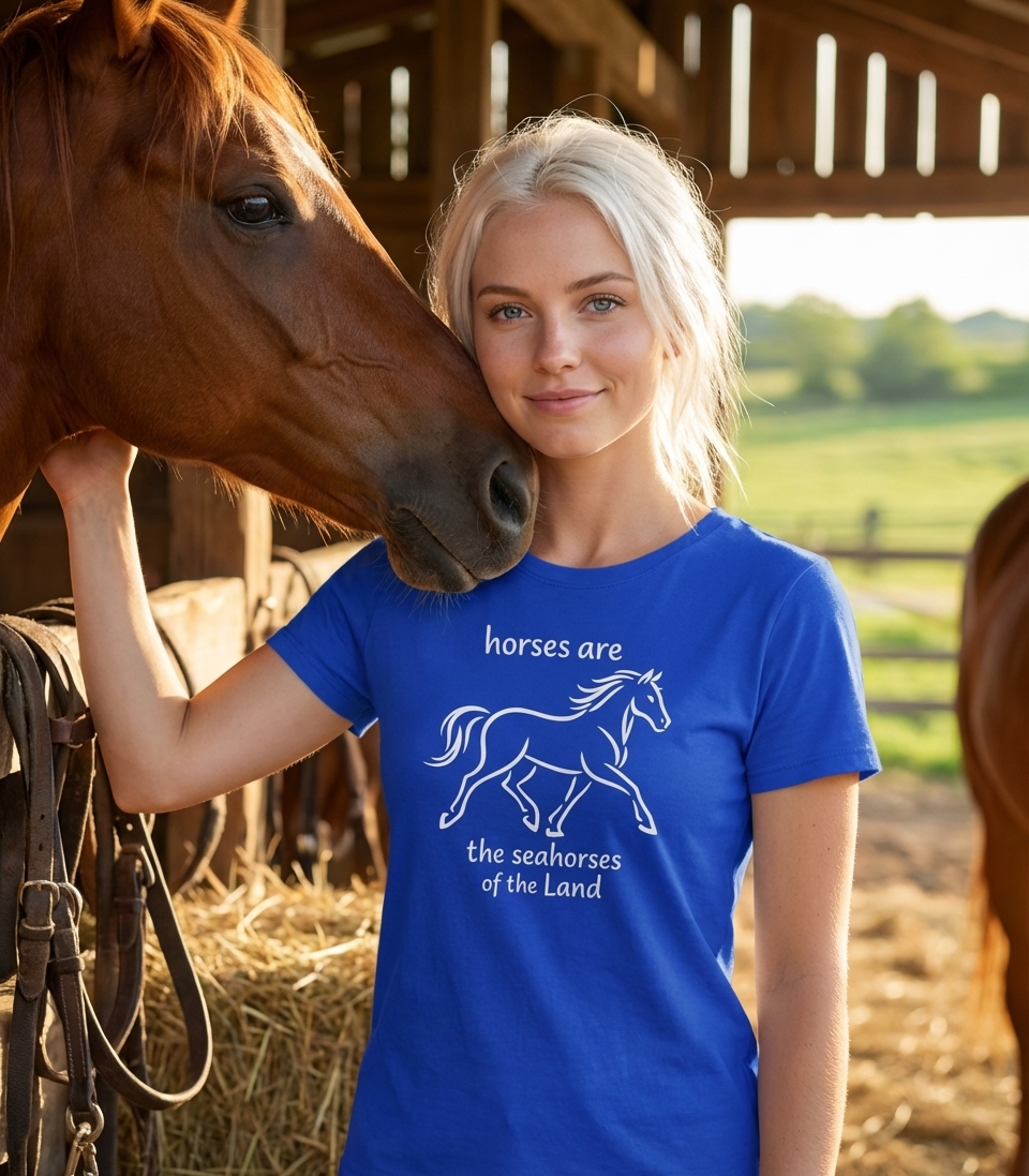 The phrase "horses are the seahorses of the land" is a playful and imaginative analogy. It highlights the unique and graceful nature of horses, drawing a parallel to the distinctive and beloved seahorse of the ocean, positioning horses as their terrestrial counterparts.