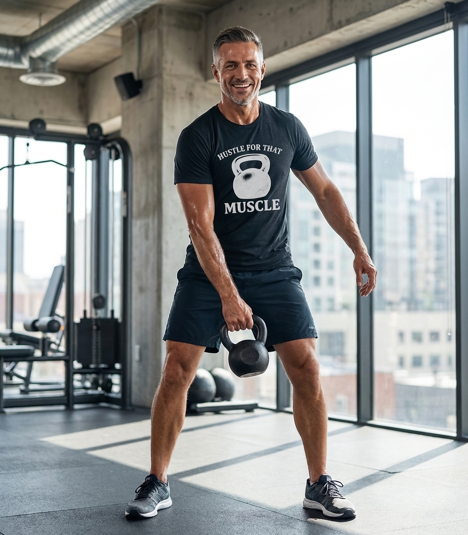 Okay so i just got this kettlebell shirt and it's actually really nice. The 'hustle for that muscle' graphic looks awesome, super sharp, and the material is soft, feels good whether i'm working out or just chilling. totally worth it!