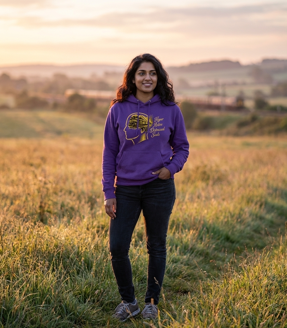 The "Hyper Active Distressed Souls" phrase captures the intense internal journey of those with a mind constantly racing, seeking understanding and connection.