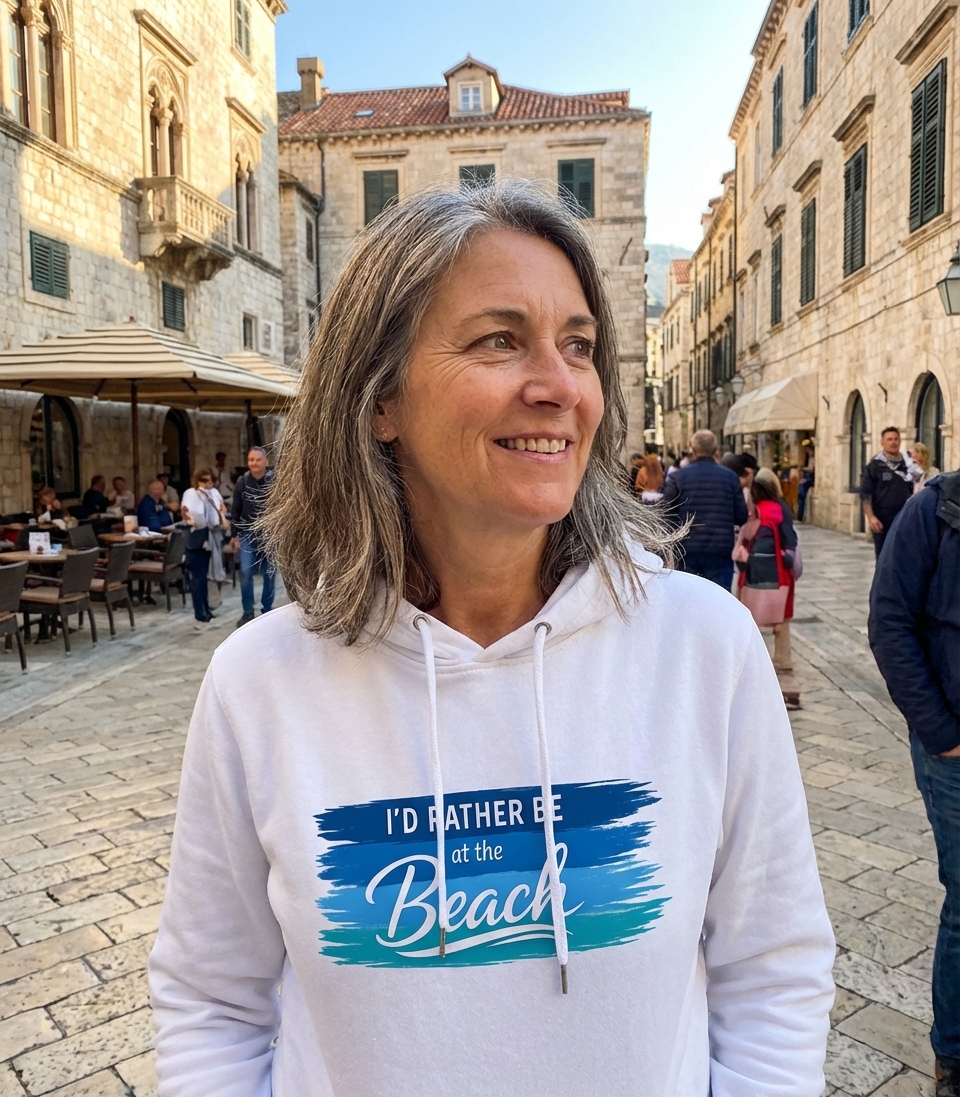 The 'I'd Rather Be At The Beach' phrase captures the lifestyle of passionate travelers who dream of ocean breezes, warm sand, and endless summer days.