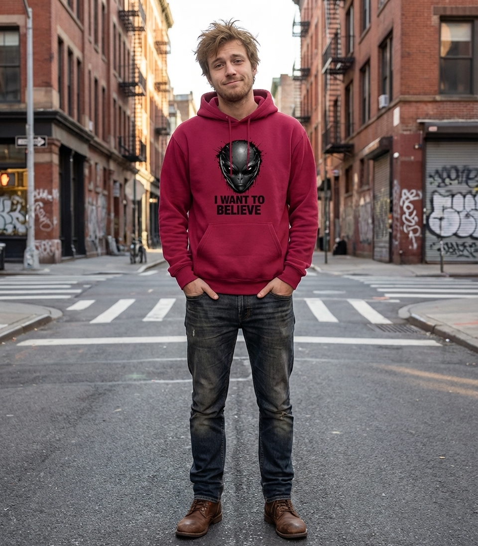 The 'I Want To Believe' phrase captures the lifestyle of curious minds who seek answers beyond our planet, explore unexplained phenomena, and hope for extraterrestrial contact.