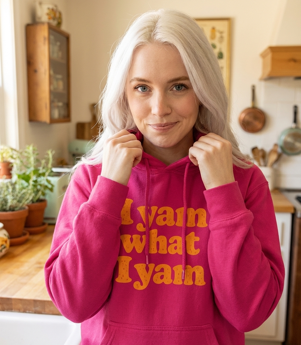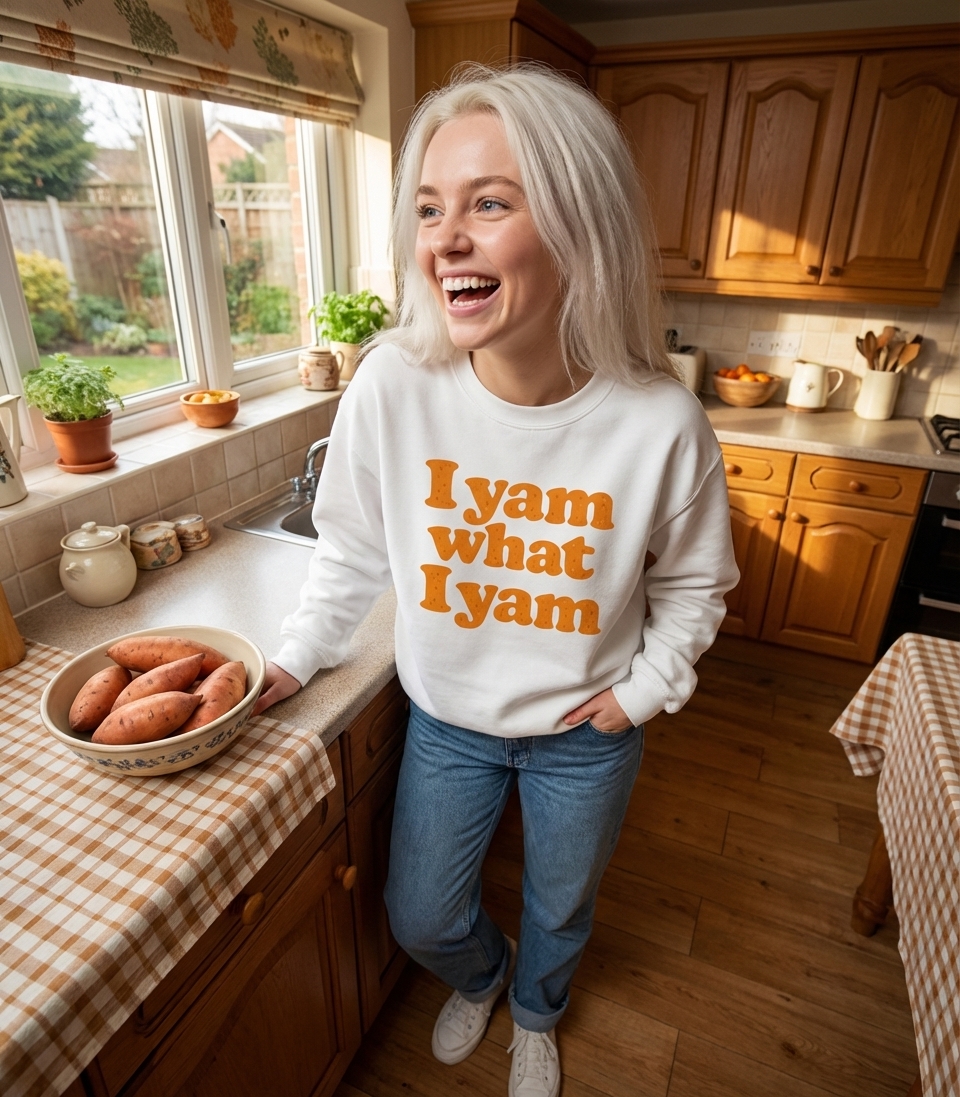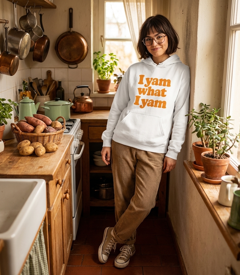 The "I Yam What I Yam" phrase captures the lifestyle of those who love a good food pun, embrace their unique self, and enjoy seasonal treats.