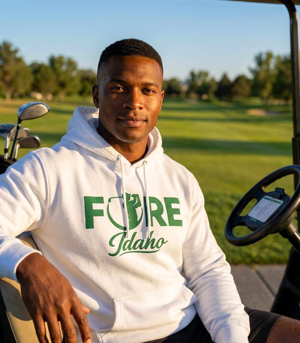 The 'FORE Idaho' phrase captures the lifestyle of passionate golfers who love playing on the scenic courses of Idaho.