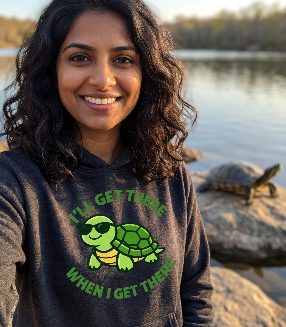 Yes! Check the style selector above to see all available options including hoodies and sweatshirts for the I'll Get There Turtle graphic.