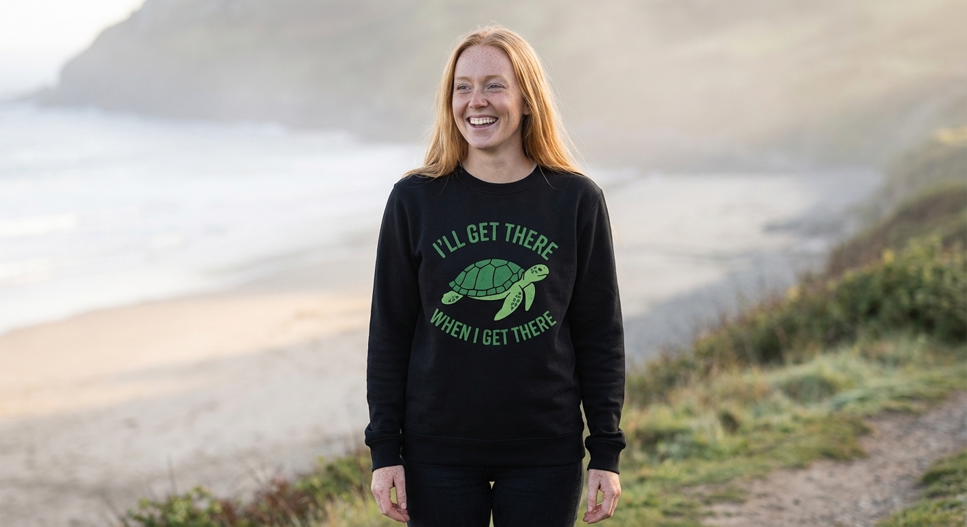 The 'I'll Get There When I Get There' phrase captures the lifestyle of patient individuals who approach life with a relaxed pace, finding humor in delays, and embracing a chill outlook.