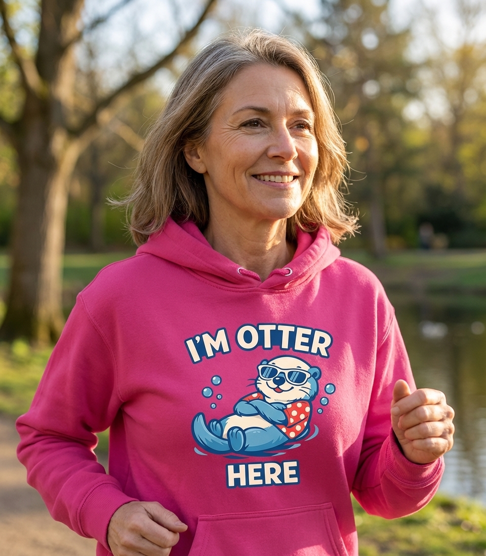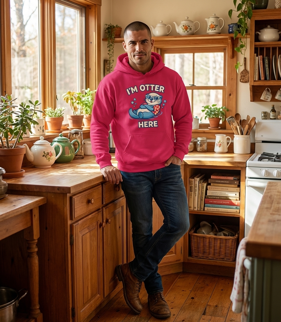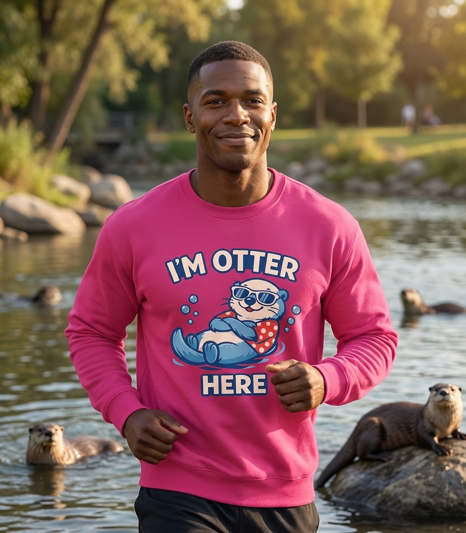 The 'I'm Otter Here' phrase captures the lifestyle of those who love a good pun, enjoy relaxing, and appreciate wildlife humor.