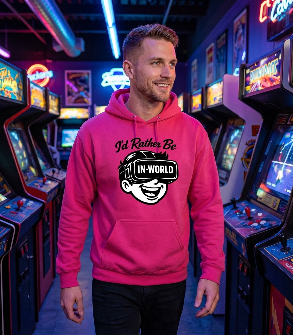 This design features the bold phrase "IN-WORLD" in a clean, modern typeface. It's a statement piece for those who deeply connect with the narratives and environments of their favorite fictional universes.