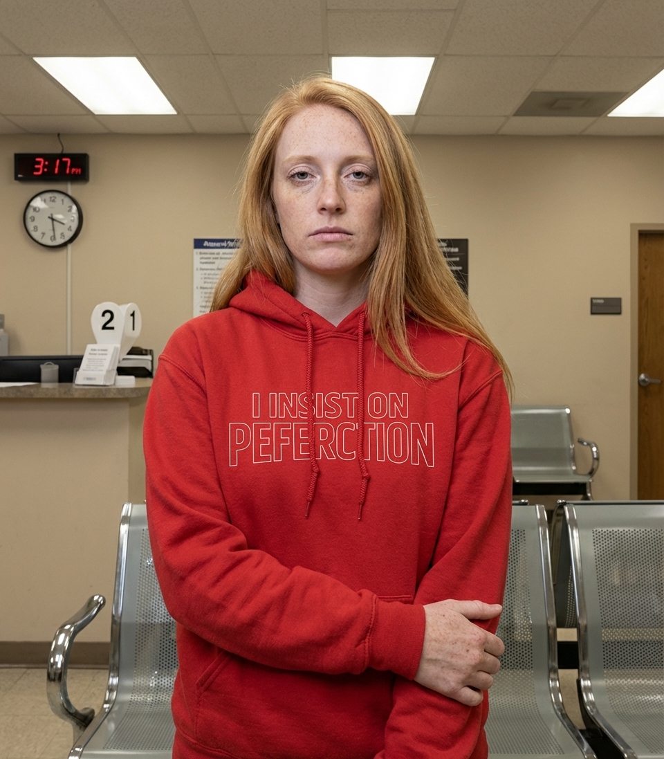 The phrase 'I insist on peferction' is a self-aware, ironic comment on the pursuit of flawlessness.