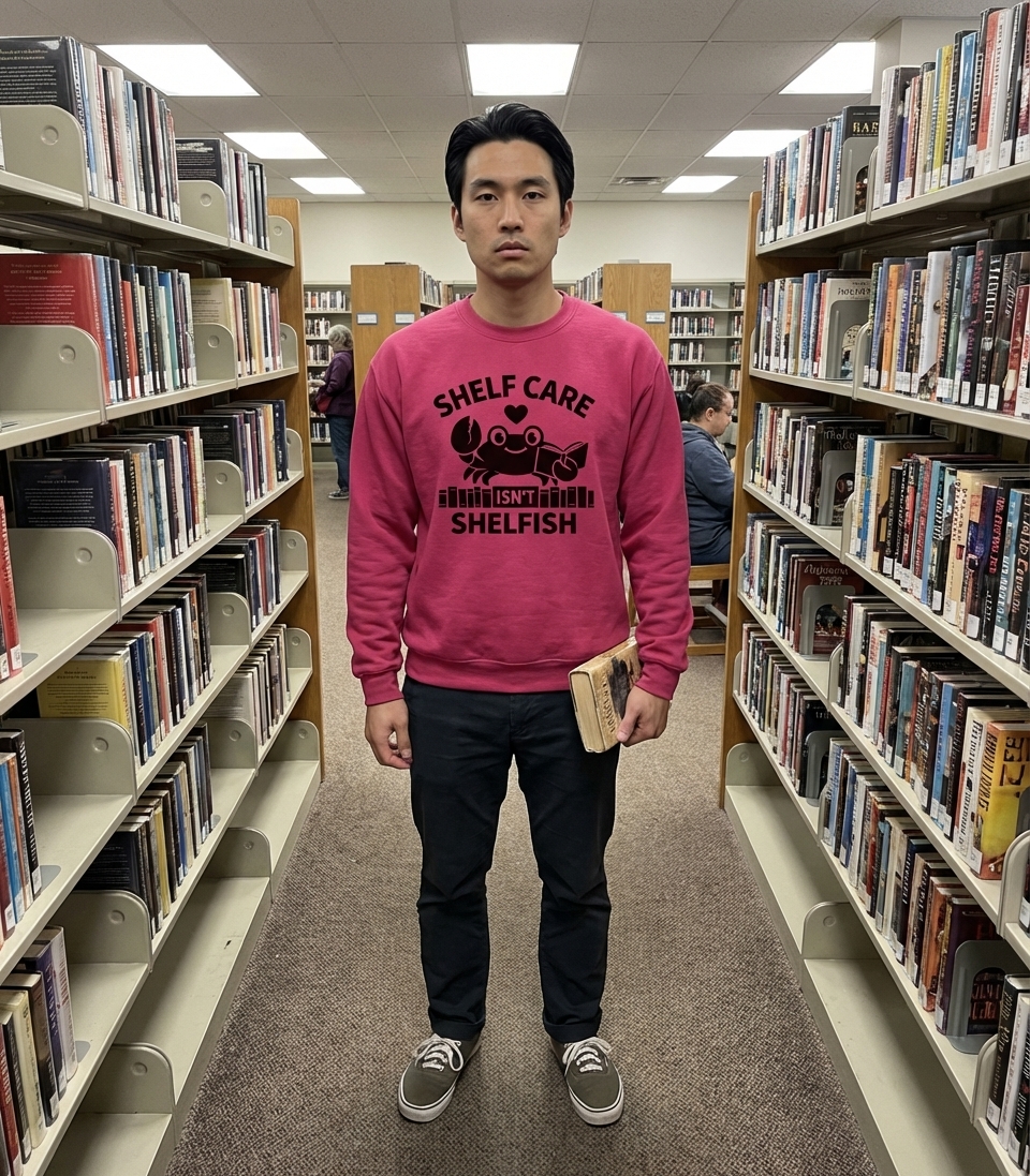 This design playfully captures the essence of an introvert's perfect evening: a quiet book, a warm drink, and a clear message to the outside world.