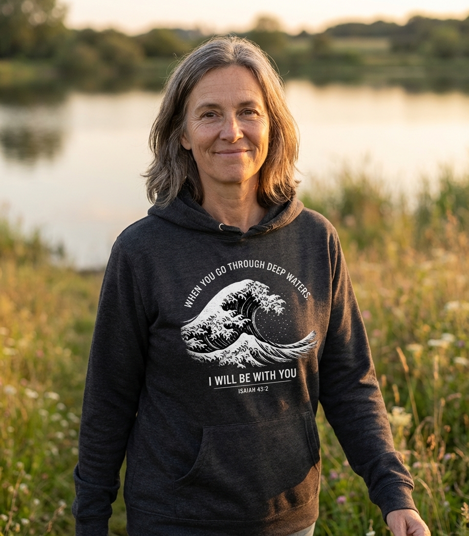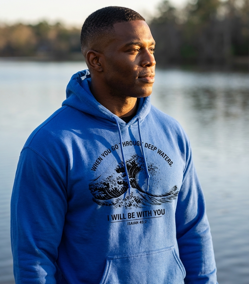 The 'Deep Waters' message captures the journey of individuals who navigate life's toughest challenges with unwavering spiritual assurance.