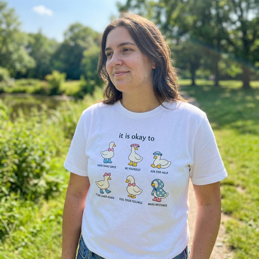 really happy with this purchase. the tee is actually way softer than i expected, which is always a bonus! and the 'it is okay ducks' design? totally unique, just love wearing it.