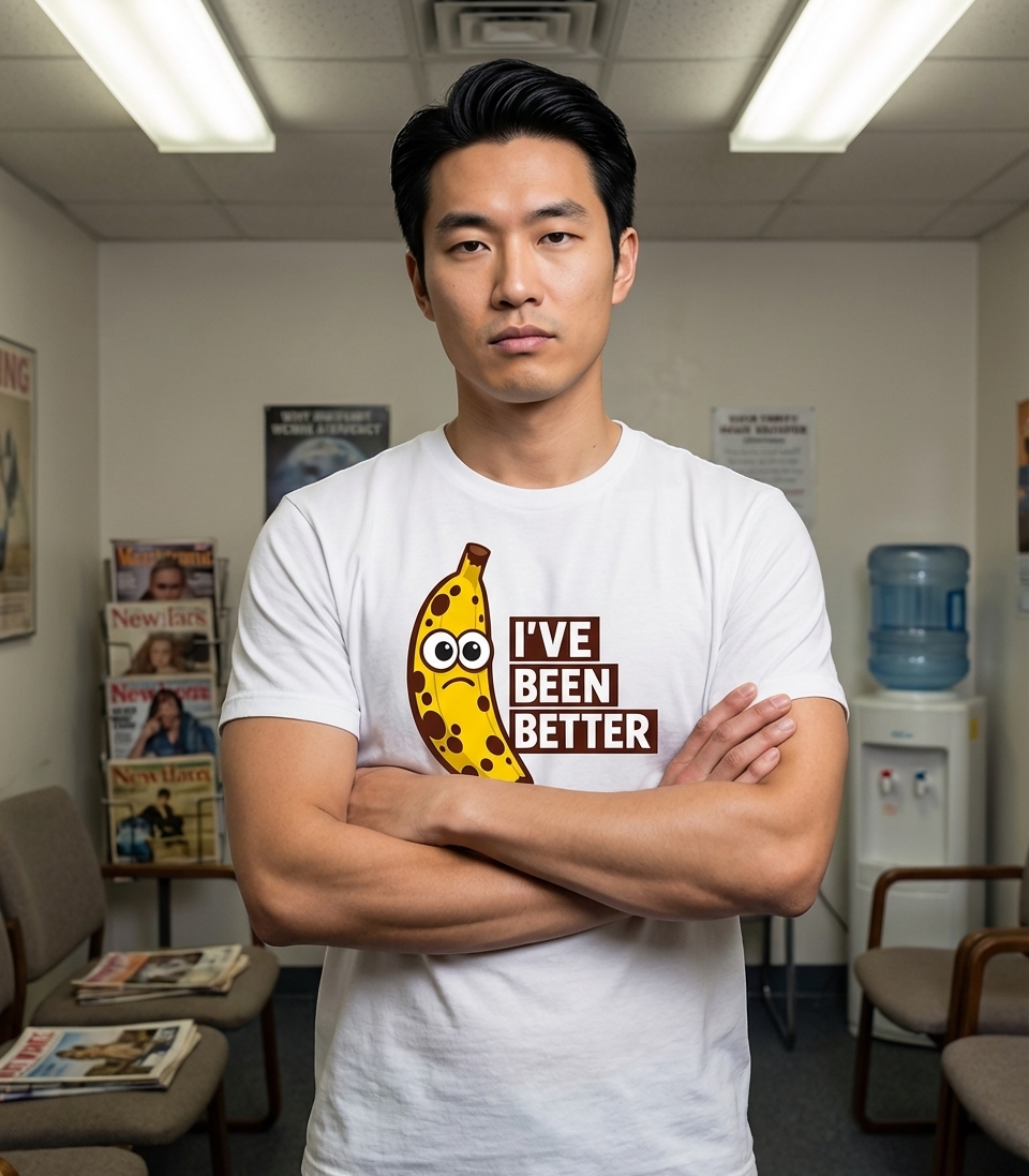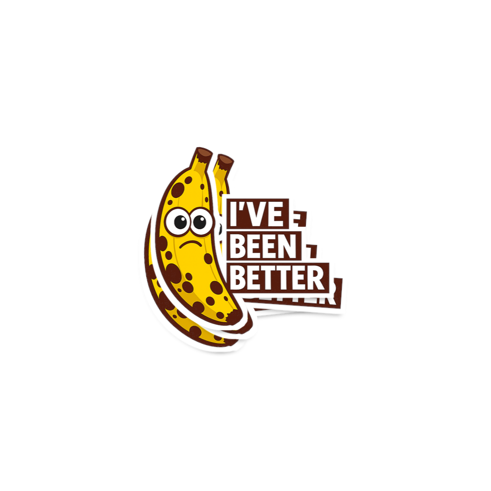 This design features a cartoon banana with visible brown spots and a distinctly sad expression. Paired with the text 'I'VE BEEN BETTER', it offers a visual and textual representation of feeling under the weather or simply not at one's peak.