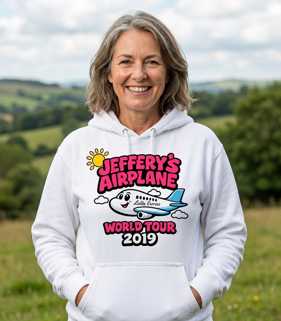 The phrase "Jeffery's Airplane World Tour" signifies a personalized journey, suggesting that Jeffery, or someone associated with the name, is embarking on or dreaming of a grand worldwide adventure. It evokes a sense of personal travel and discovery.