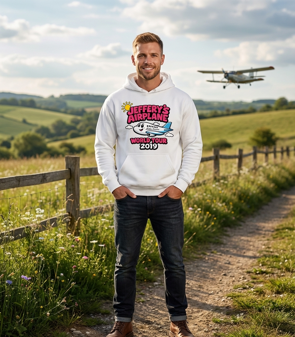 The "Jeffery's Airplane World Tour" design captures the adventurous spirit of enthusiastic travelers who dream of exploring new places, flying high, and making memories around the globe.