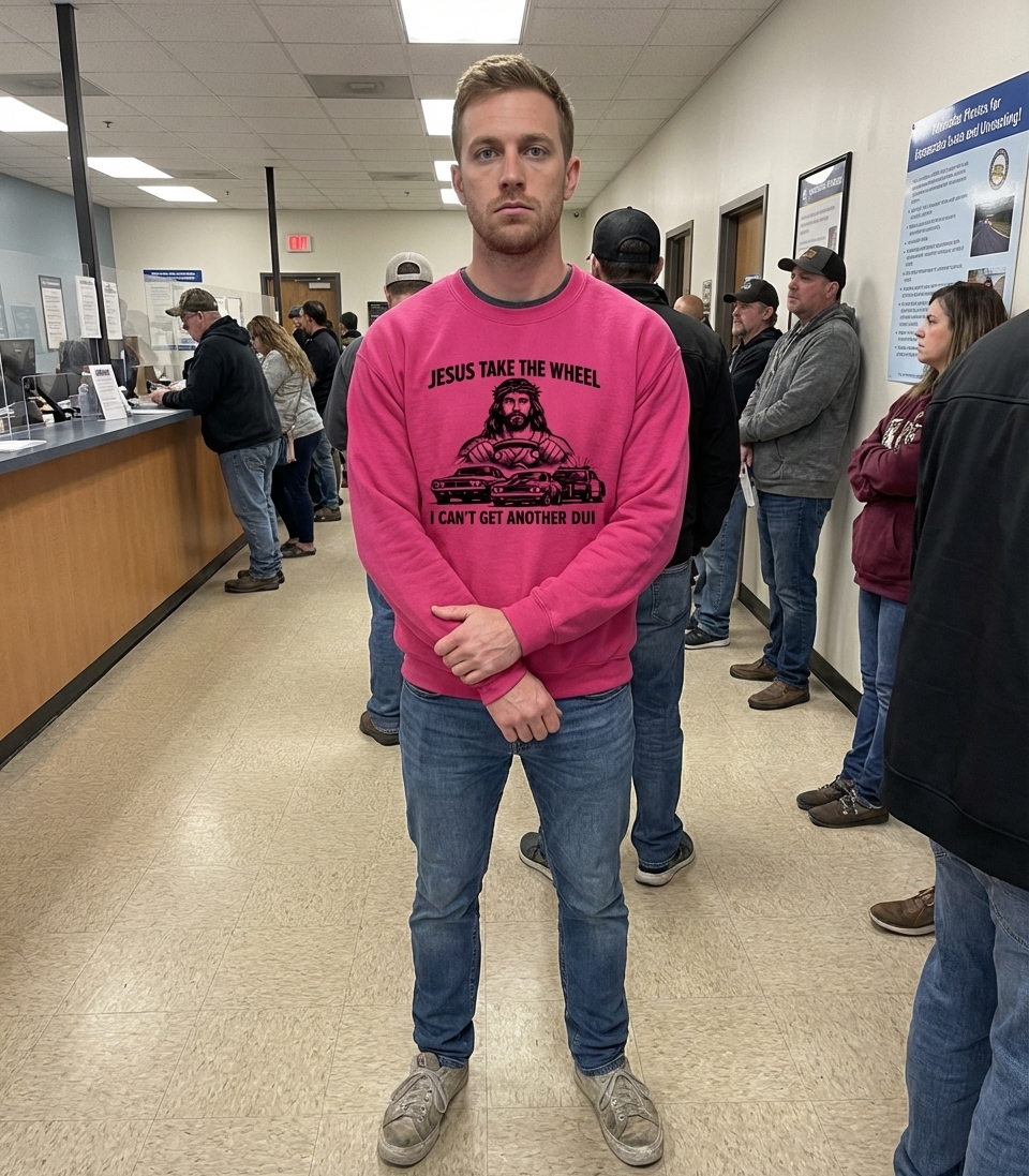The 'Jesus Take The Wheel' phrase captures the shared experience of needing divine guidance to navigate life's unexpected turns, especially after one too many.