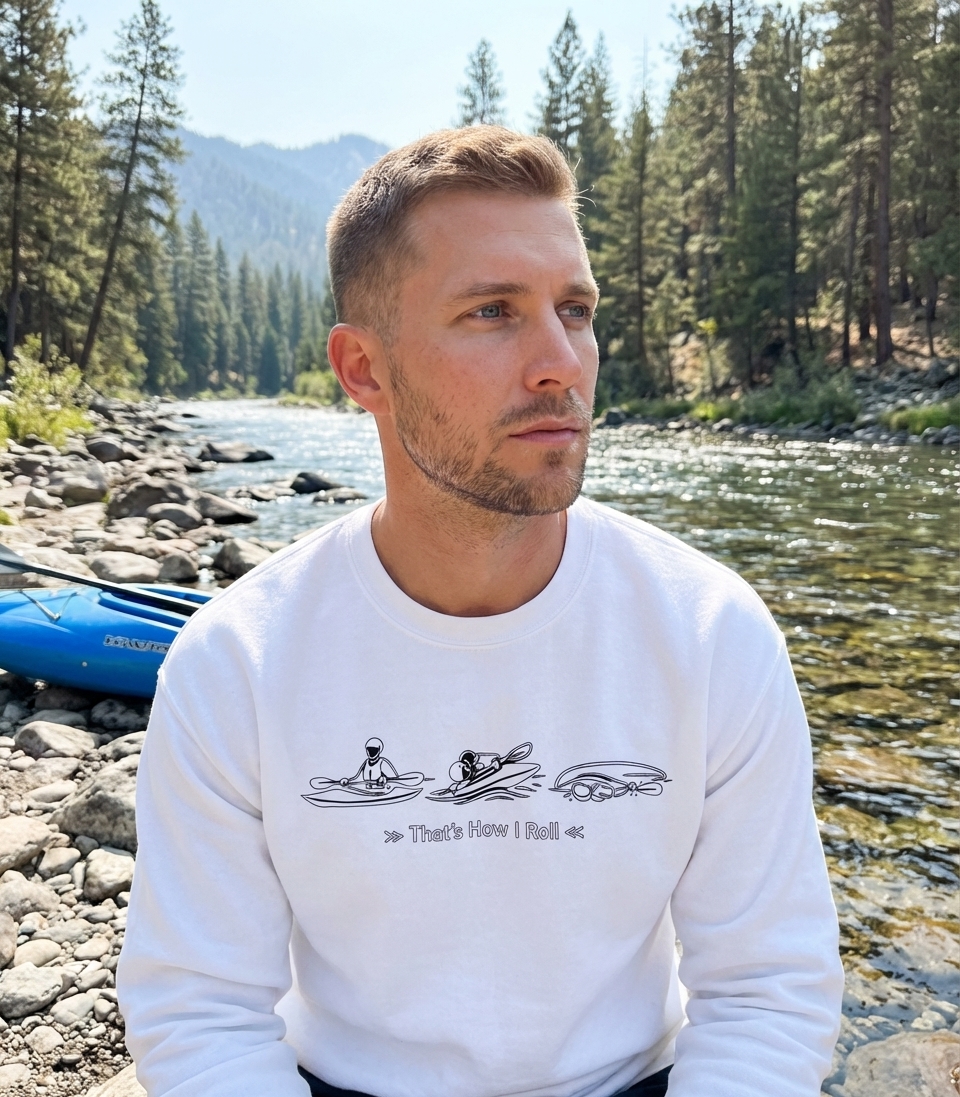 The 'That's How I Roll' phrase captures the unique spirit of passionate kayakers who master the art of the roll on their whitewater adventures.