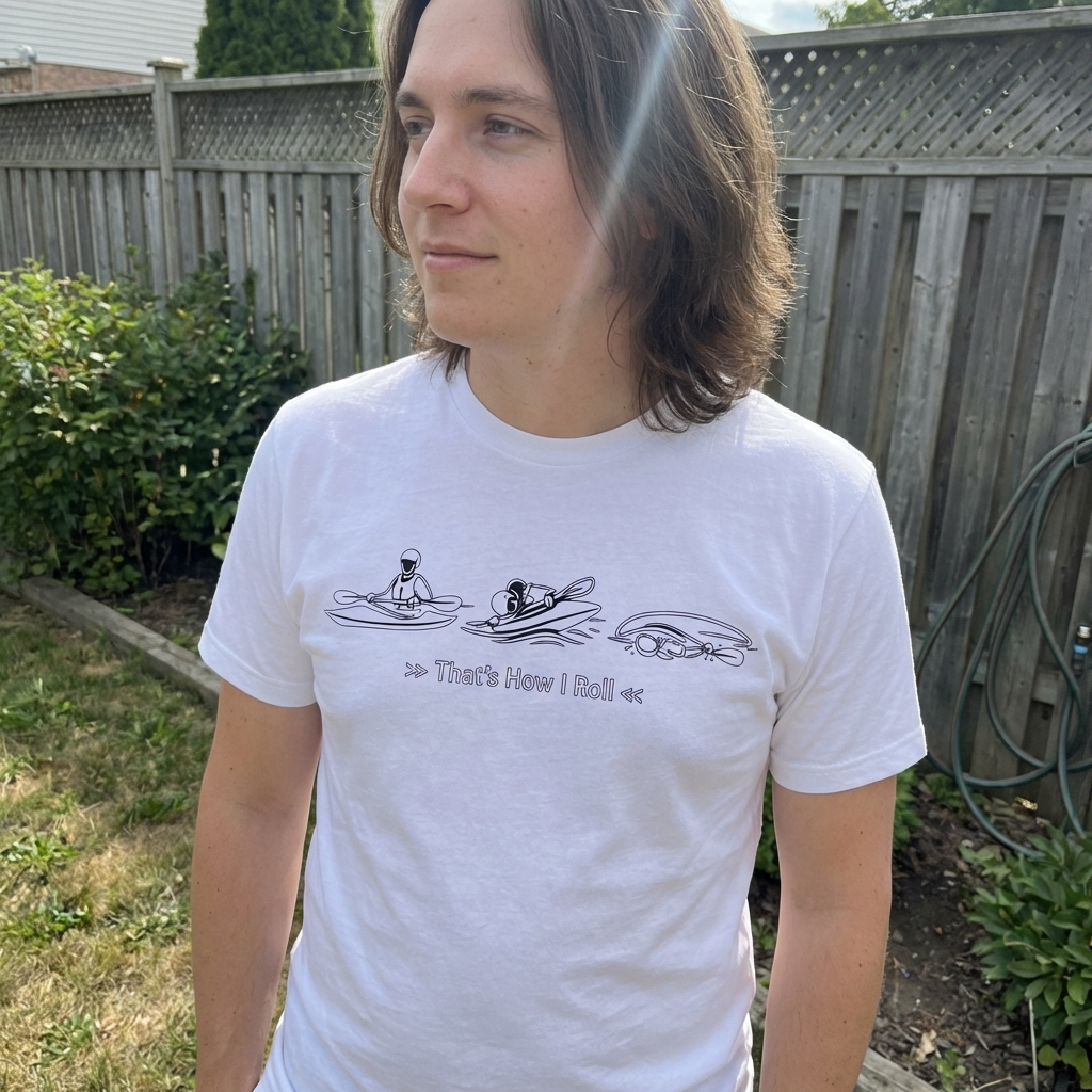 The phrase "That's How I Roll" is a playful double entendre, referring both to the literal kayak roll maneuver and the common idiom meaning "that's my style" or "that's how I live."