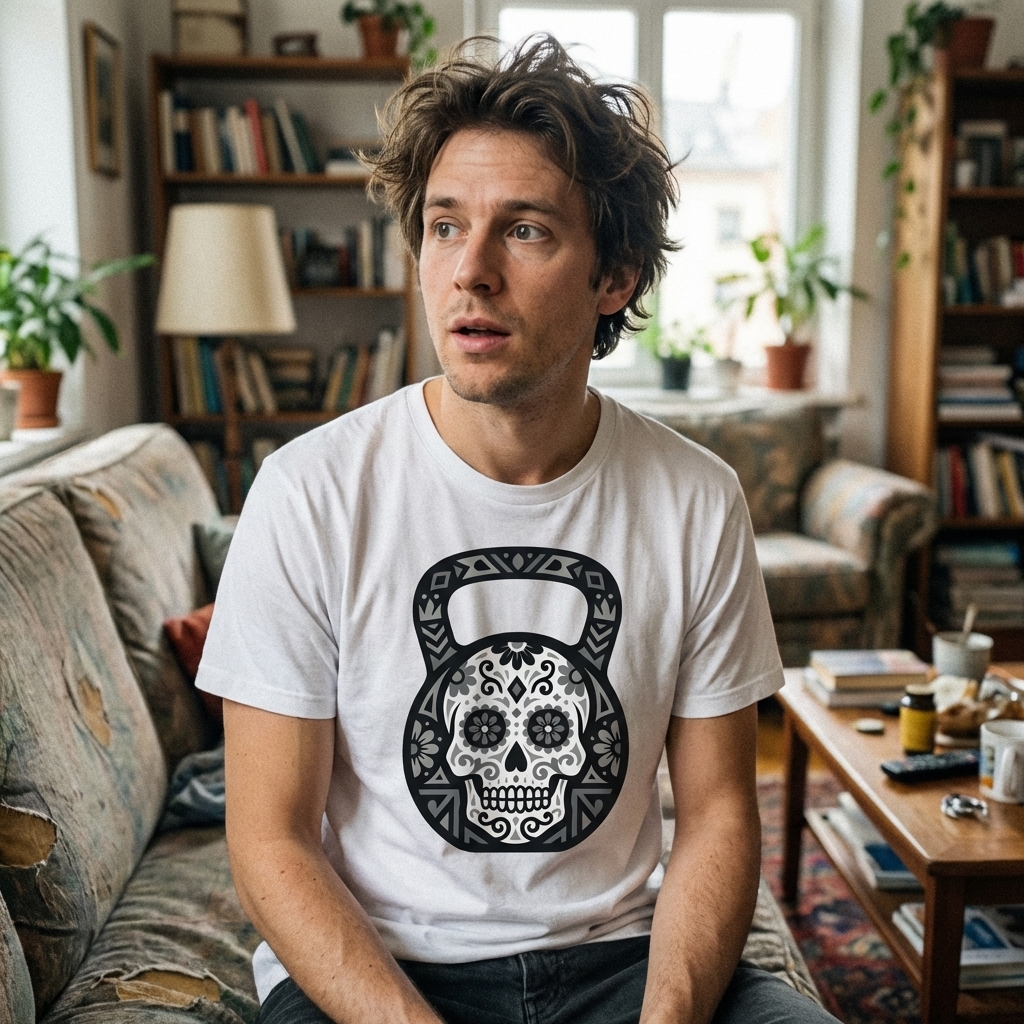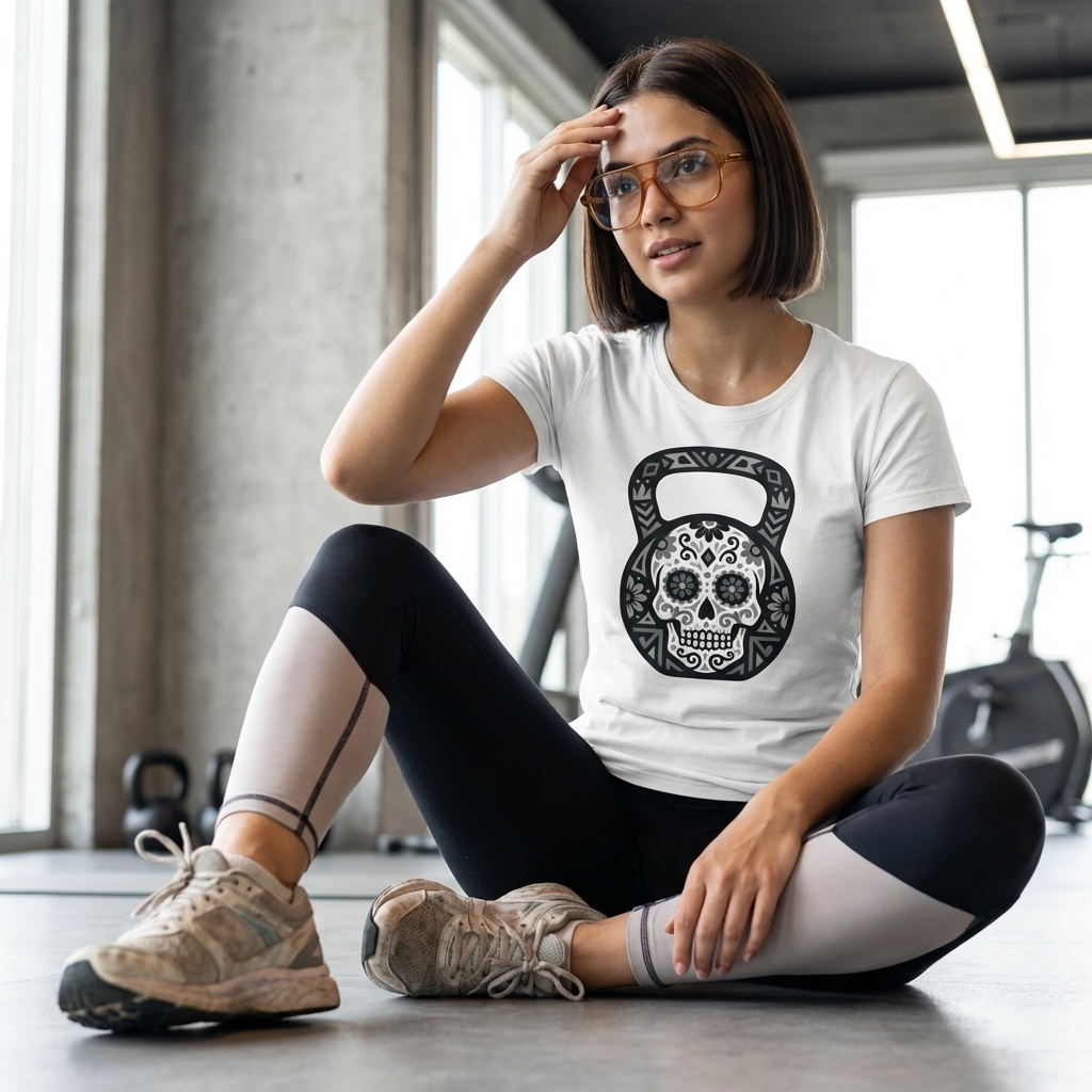 just got this kettlebell sugar skull shirt and wow, it's even better in person! the design is so unique and cool, exactly what I was hoping for. super comfy fabric too, definitely happy with this purchase.
