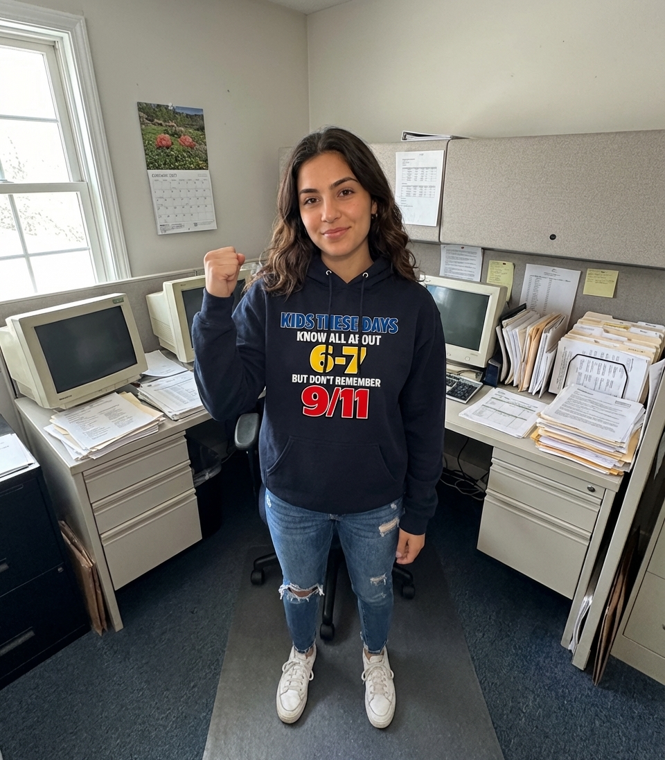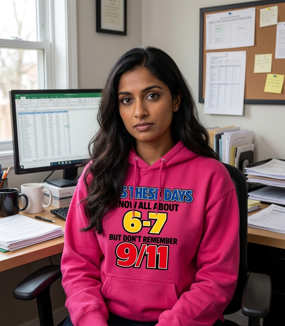 The phrase "Kids These Days, 6-7, 9/11" serves as a poignant reminder that children born after 2001 do not have direct memories of the September 11 attacks. It's a form of observational humor and social commentary, underscoring how quickly time progresses and historical events become part of the past for new generations.