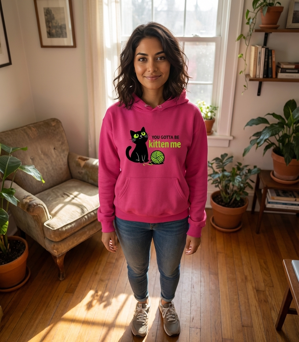 The phrase "kitten me" is a clever and lighthearted pun on "kidding me," imbued with feline charm. It expresses a playful sense of disbelief or exasperation, all while celebrating the endearing antics of cats.