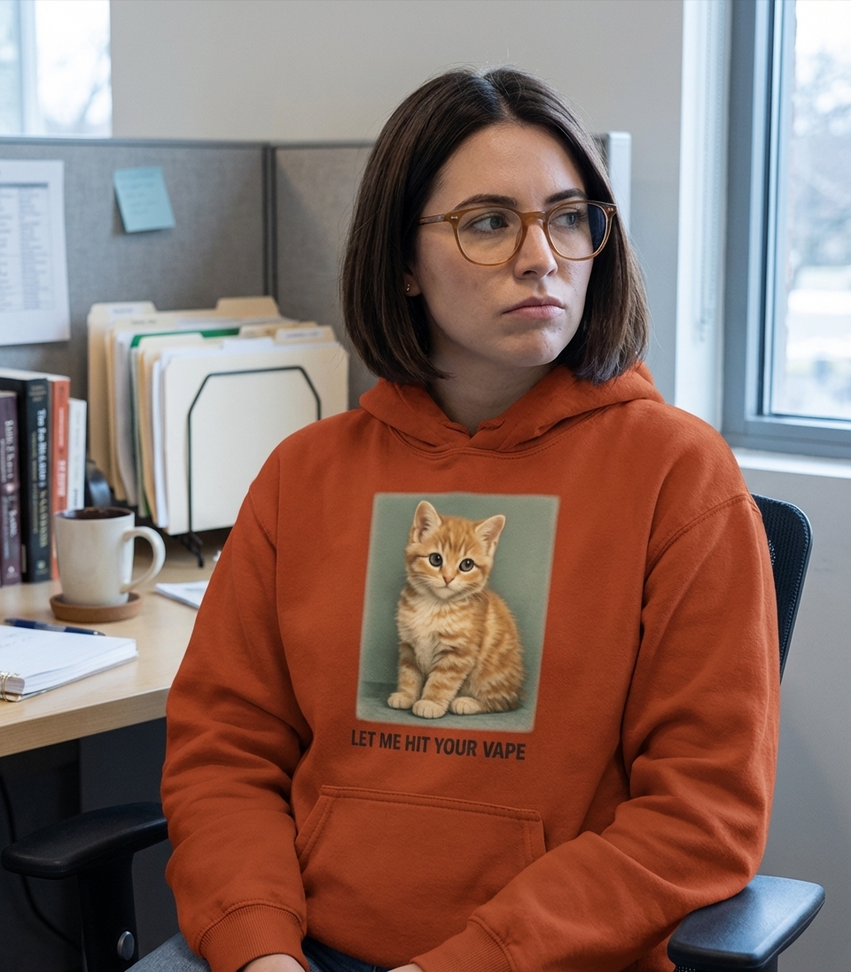 Yes! Check the style selector above to see all available options including hoodies and sweatshirts for the Kitten Vape Humor graphic.