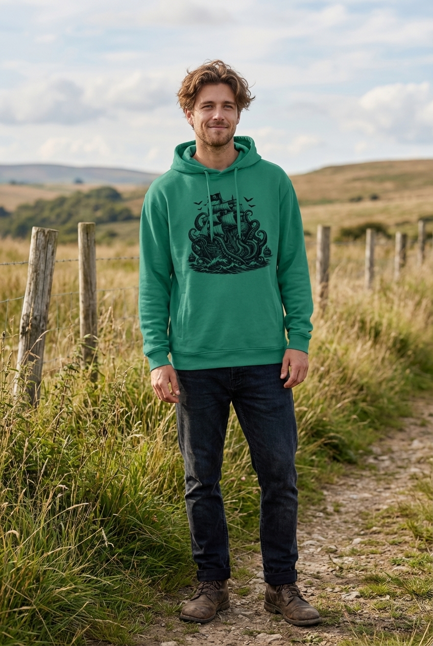 Yes! Check the style selector above to see all available options including hoodies and sweatshirts for the Kraken Pirate Ship Battle graphic.
