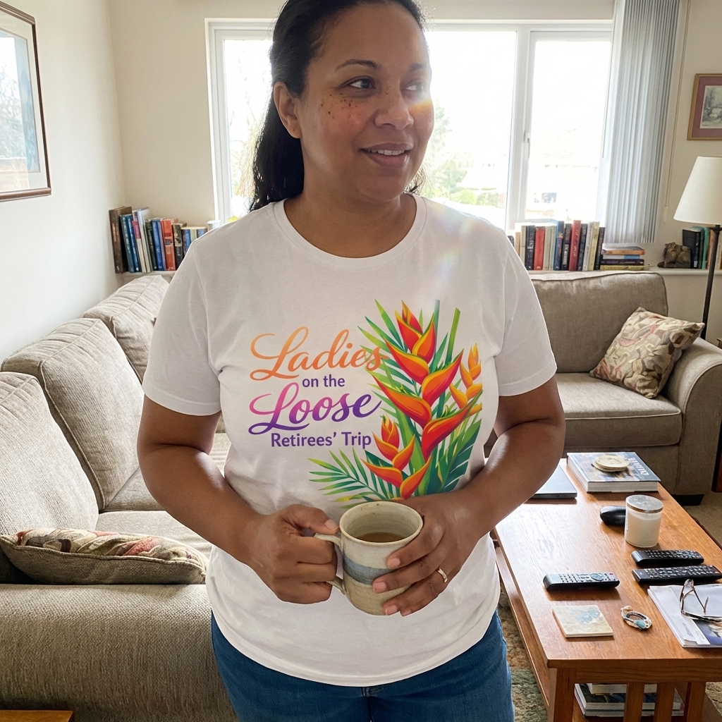"Ladies on the Loose" colloquially describes women enjoying unrestrained freedom and fun, often while traveling or socializing as a group. When combined with "Retirees' Trip," it signifies a special getaway for retired women ready to leave responsibilities behind and enjoy life to the fullest with friends. It celebrates independence and shared adventures.