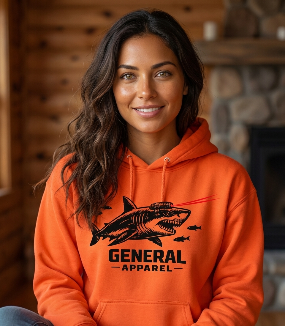 The Laser Shark graphic captures the lifestyle of enthusiasts who appreciate powerful marine life, sci-fi weaponry, and bold, humorous designs.