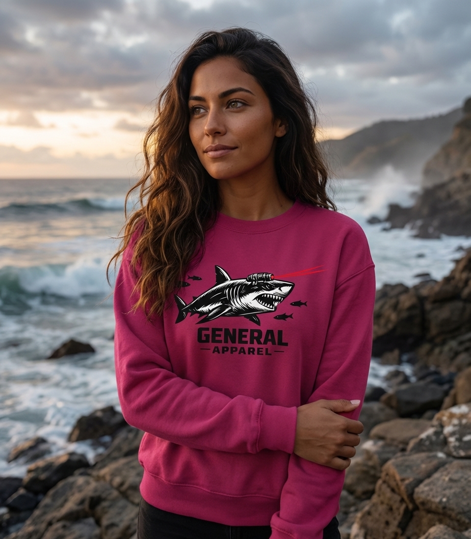 The "Laser Shark" concept symbolizes ultimate power and an unexpected blend of wilderness and advanced technology. It's a playful nod to pop culture references about weaponized animals, conveying a sense of untouchable coolness and formidable presence. This imagery speaks to those who appreciate a unique and commanding visual statement.