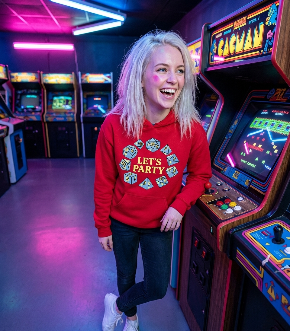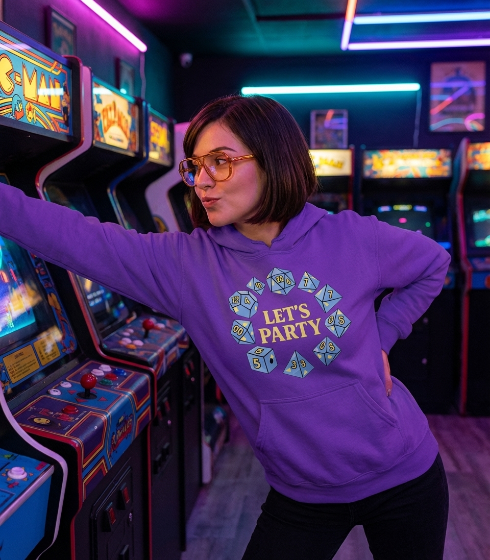 Yes! Check the style selector above to see all available options including hoodies and sweatshirts for the Let's Party Dice graphic.
