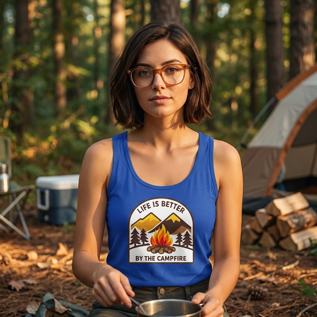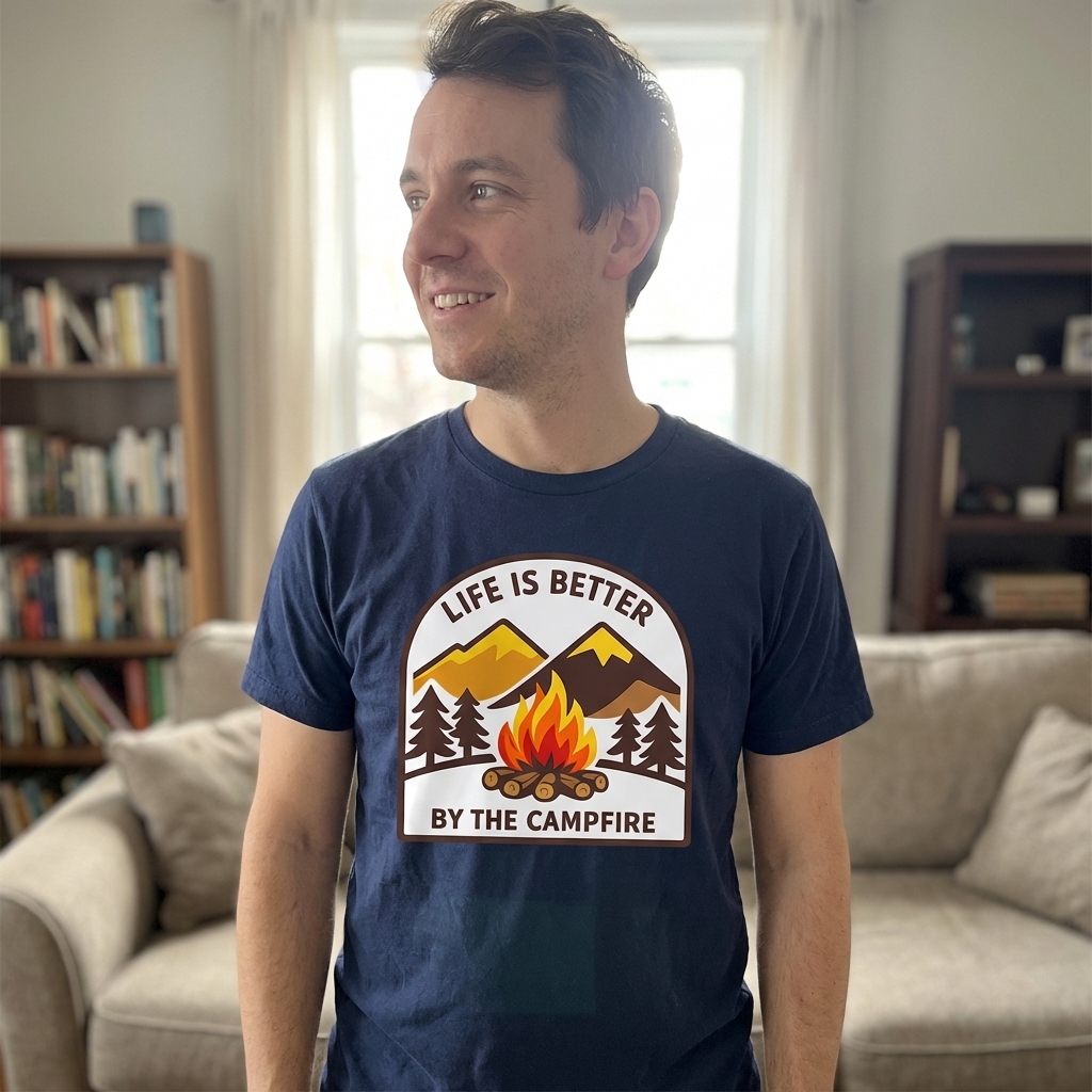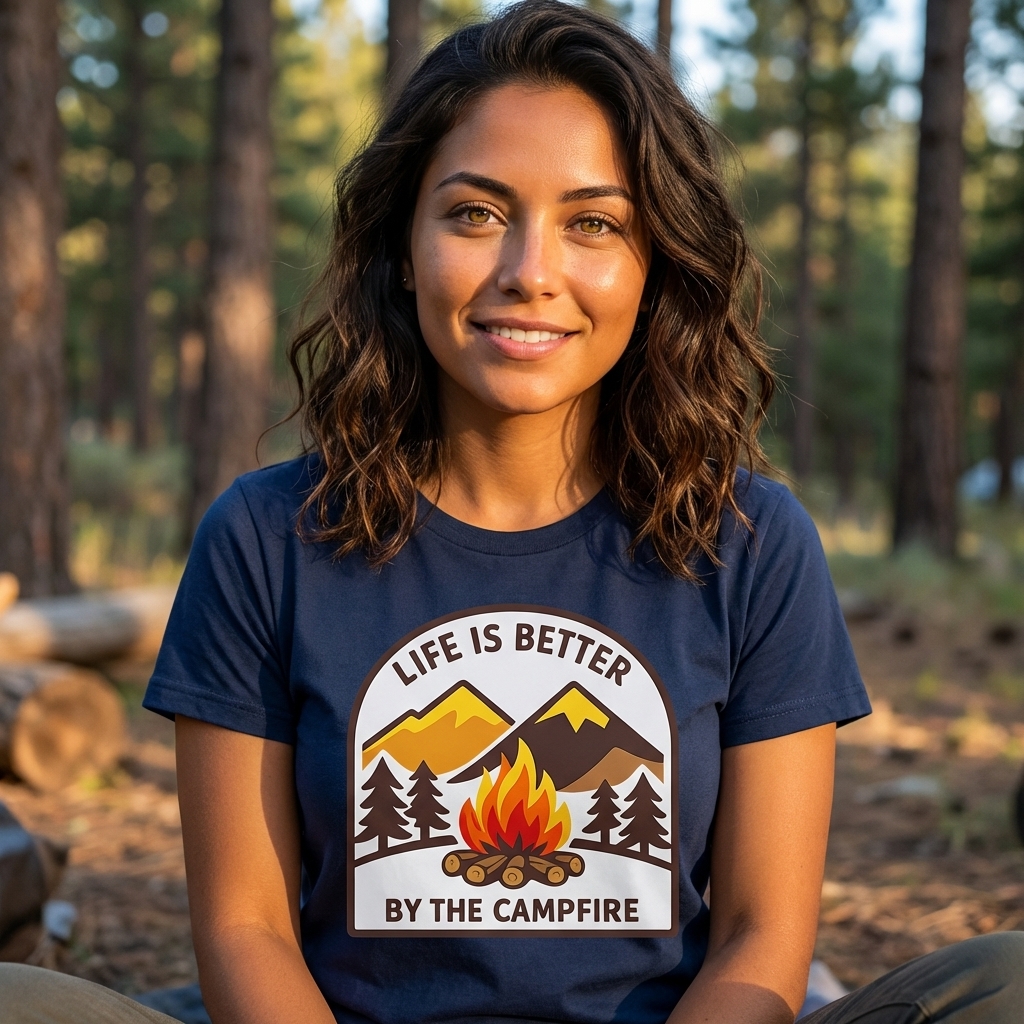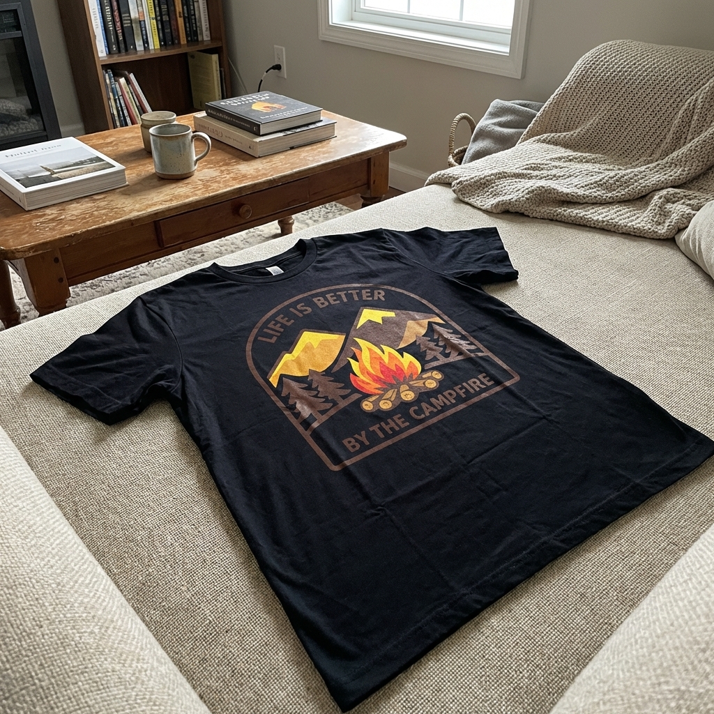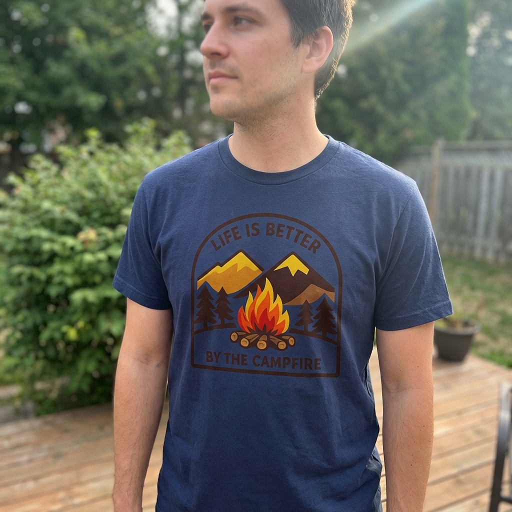 Okay so this shirt is actually really soft, which is always a plus. The 'Life By Campfire' design is just what I wanted – kinda abstract but still gives off a really warm, cozy feeling. Definitely happy with this purchase!