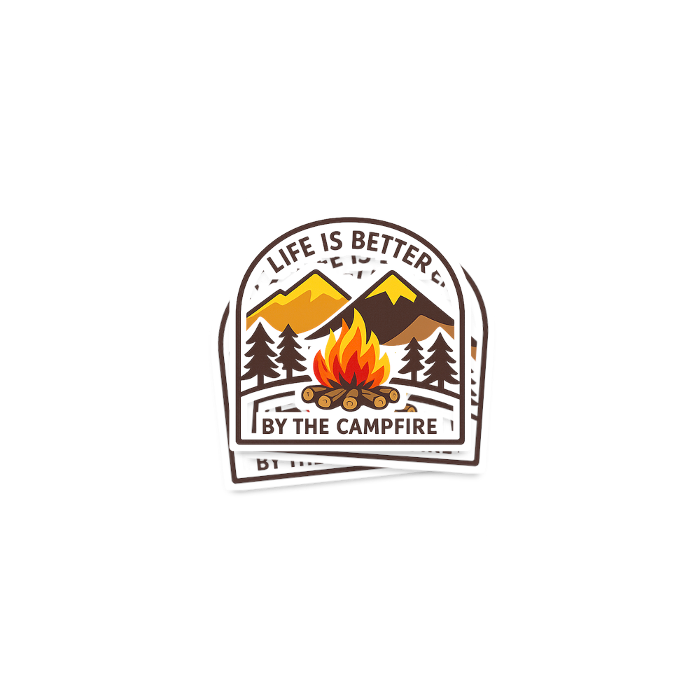 The 'Life is Better by the Campfire' phrase captures the mindset of passionate outdoor enthusiasts who find peace and joy in wilderness adventures and cozy evenings under the stars.