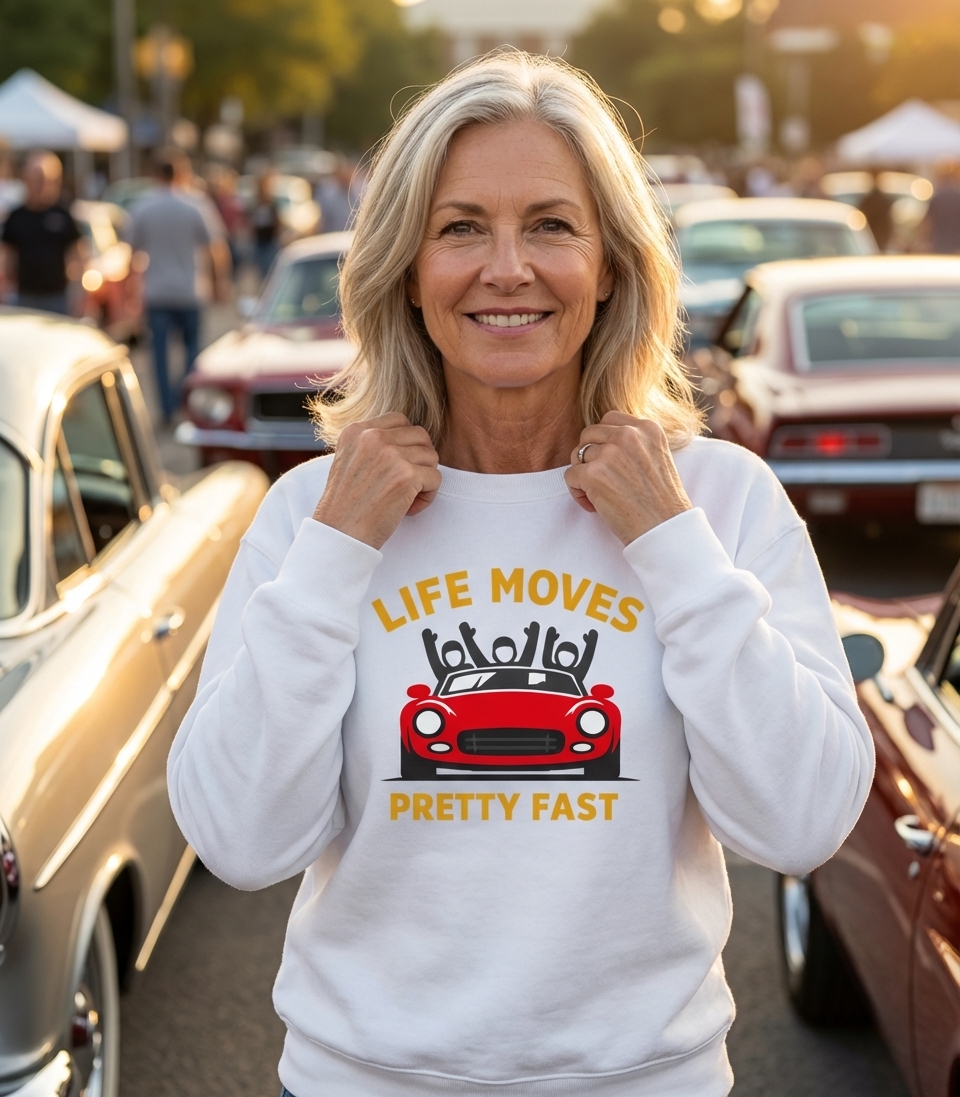 Yes! Check the style selector above to see all available options including hoodies and sweatshirts for the Life Moves Fast Car graphic.
