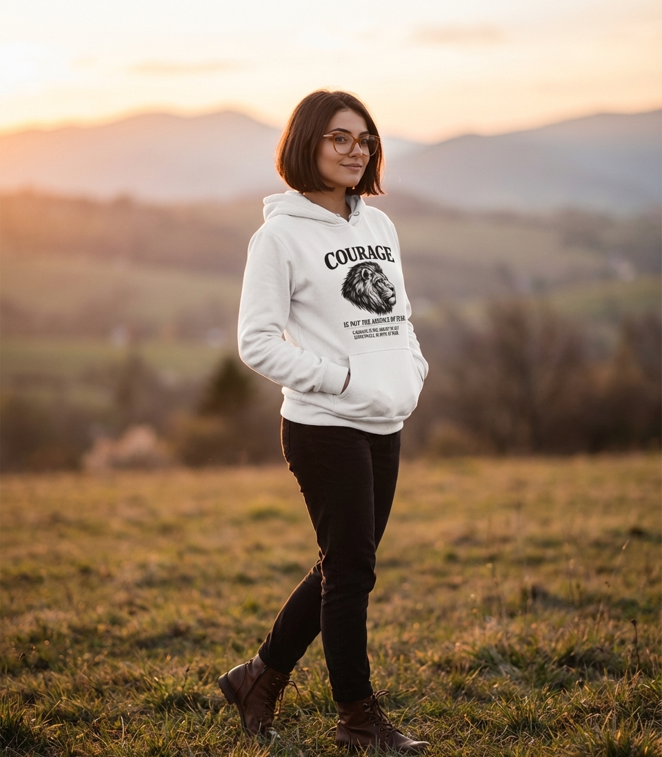 Yes! Check the style selector above to see all available options including hoodies and sweatshirts for the Lion Courage Quote graphic.