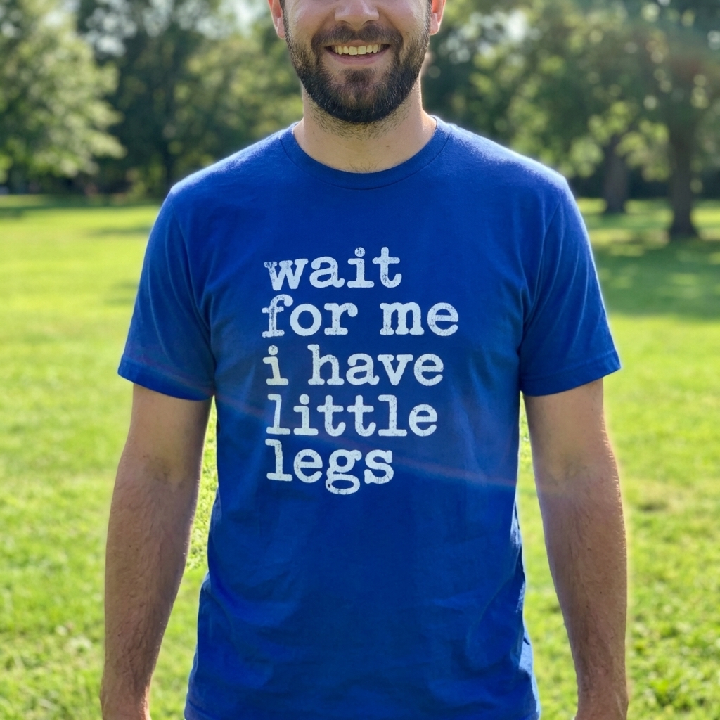 The "Wait For Me I Have Little Legs" phrase captures the lifestyle of those who embrace their unique pace, often finding humor in life's little challenges and sharing a laugh with friends.