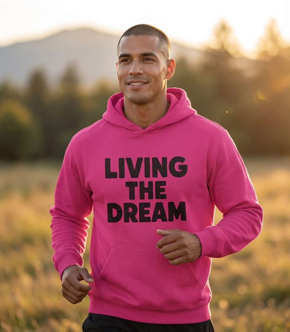 The "Living The Dream" phrase captures the lifestyle of those who find joy and fulfillment in their daily lives, whether through aspiration or simple contentment.
