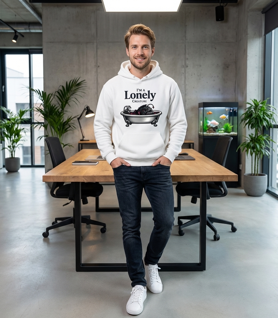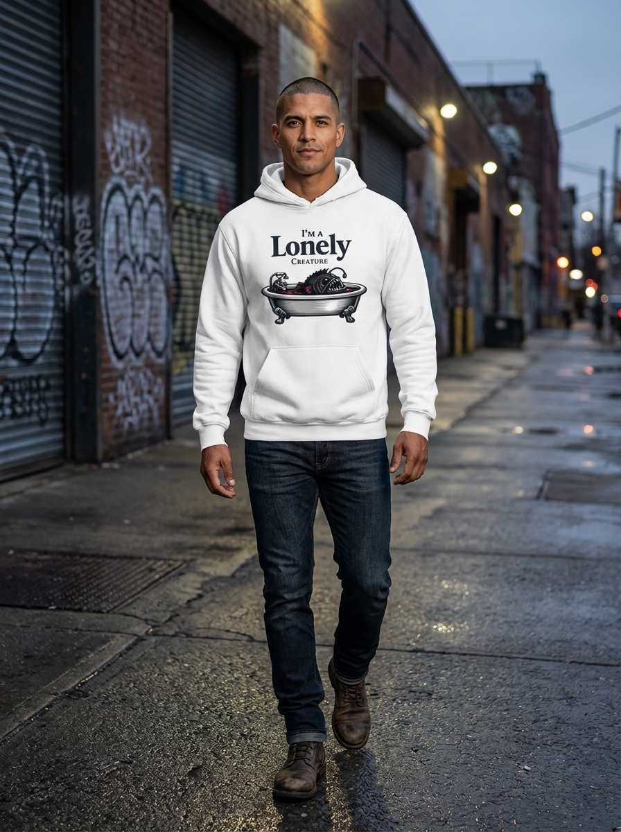 The phrase "I'm a Lonely Creature" directly captures the design's core sentiment, offering a self-aware and humorous take on introversion. It speaks to those who find comfort and peace in their own company, often preferring quiet solitude over bustling social interactions.