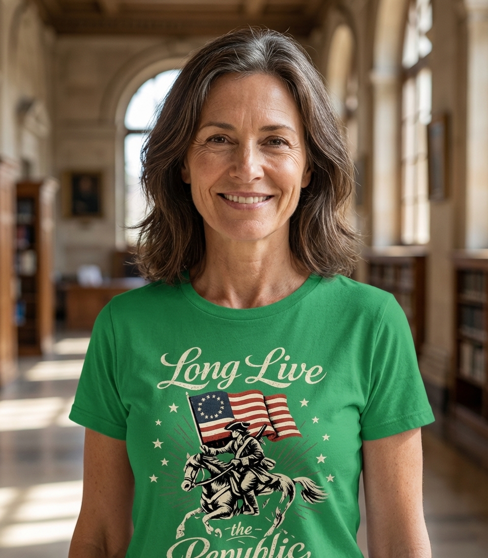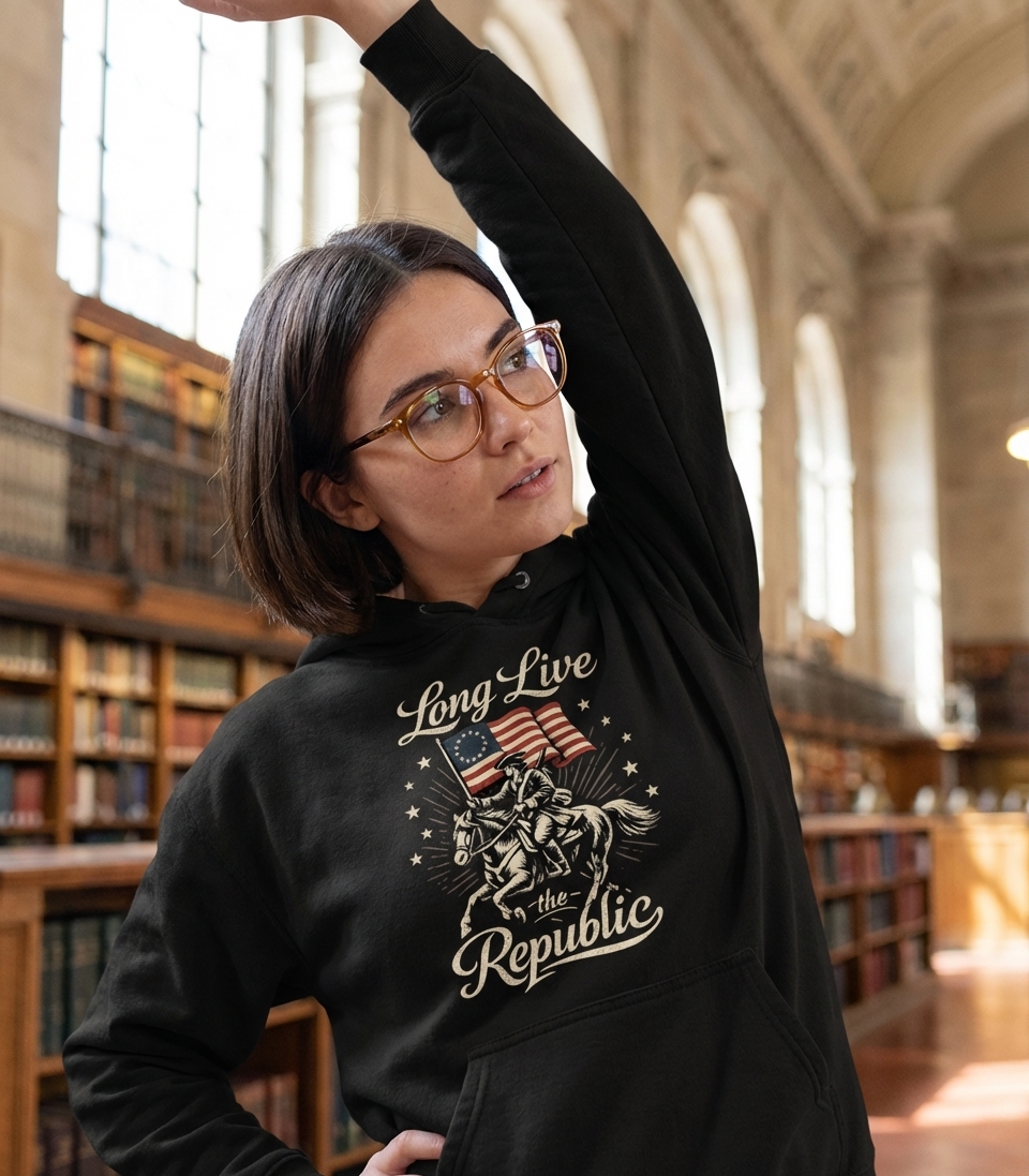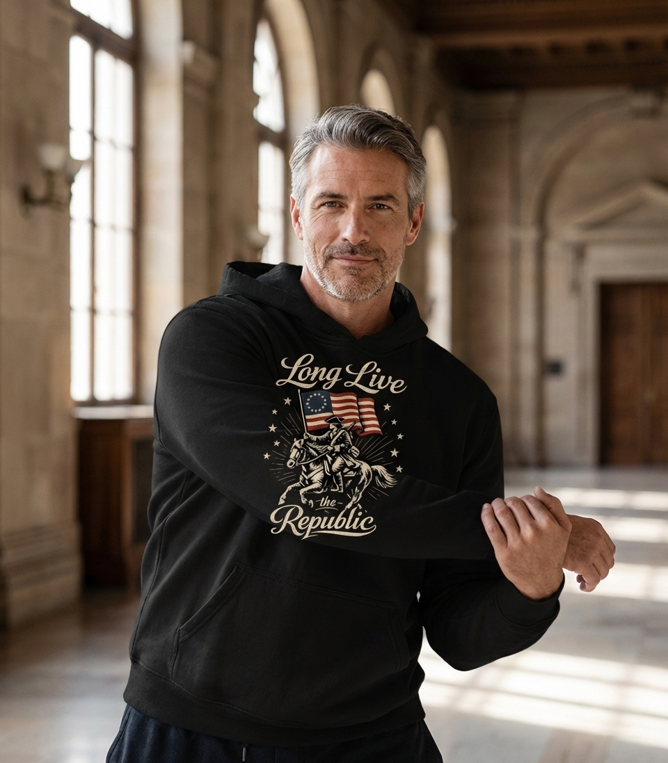 The "Long Live the Republic" phrase captures the lifestyle of patriotic Americans who honor historical roots, cherish freedom, and advocate for constitutional principles.