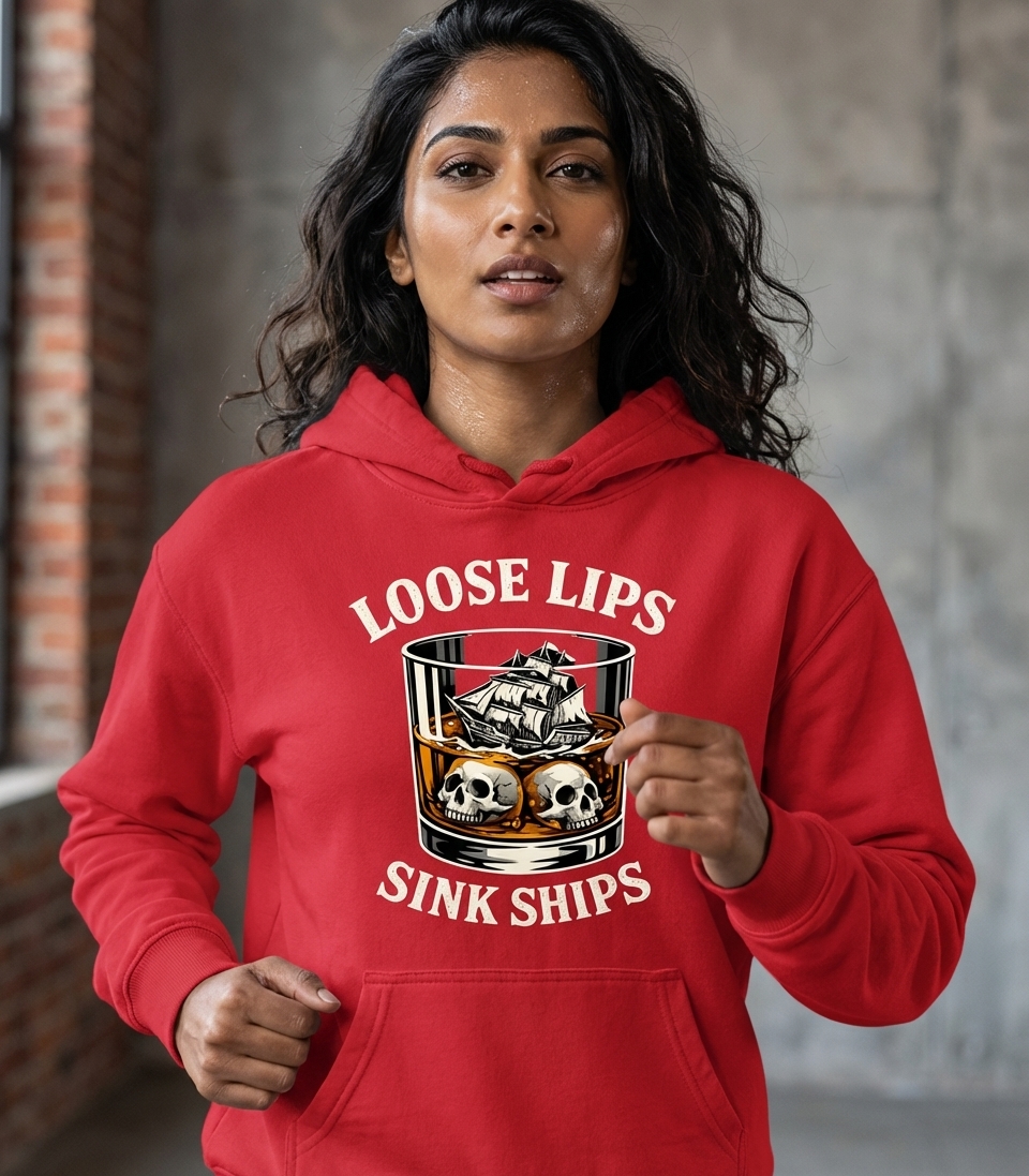 Yes! Check the style selector above to see all available options including hoodies and sweatshirts for the Loose Lips Sink Ships graphic.