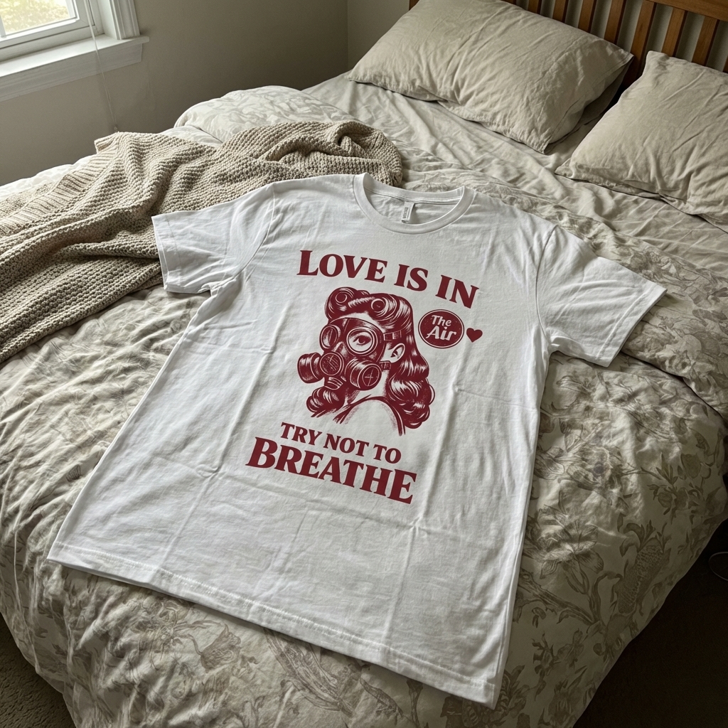 The "Love Is In The Air" phrase captures the lifestyle of those with a cynical view on romance, who prefer dark humor and a touch of retro rebellion.